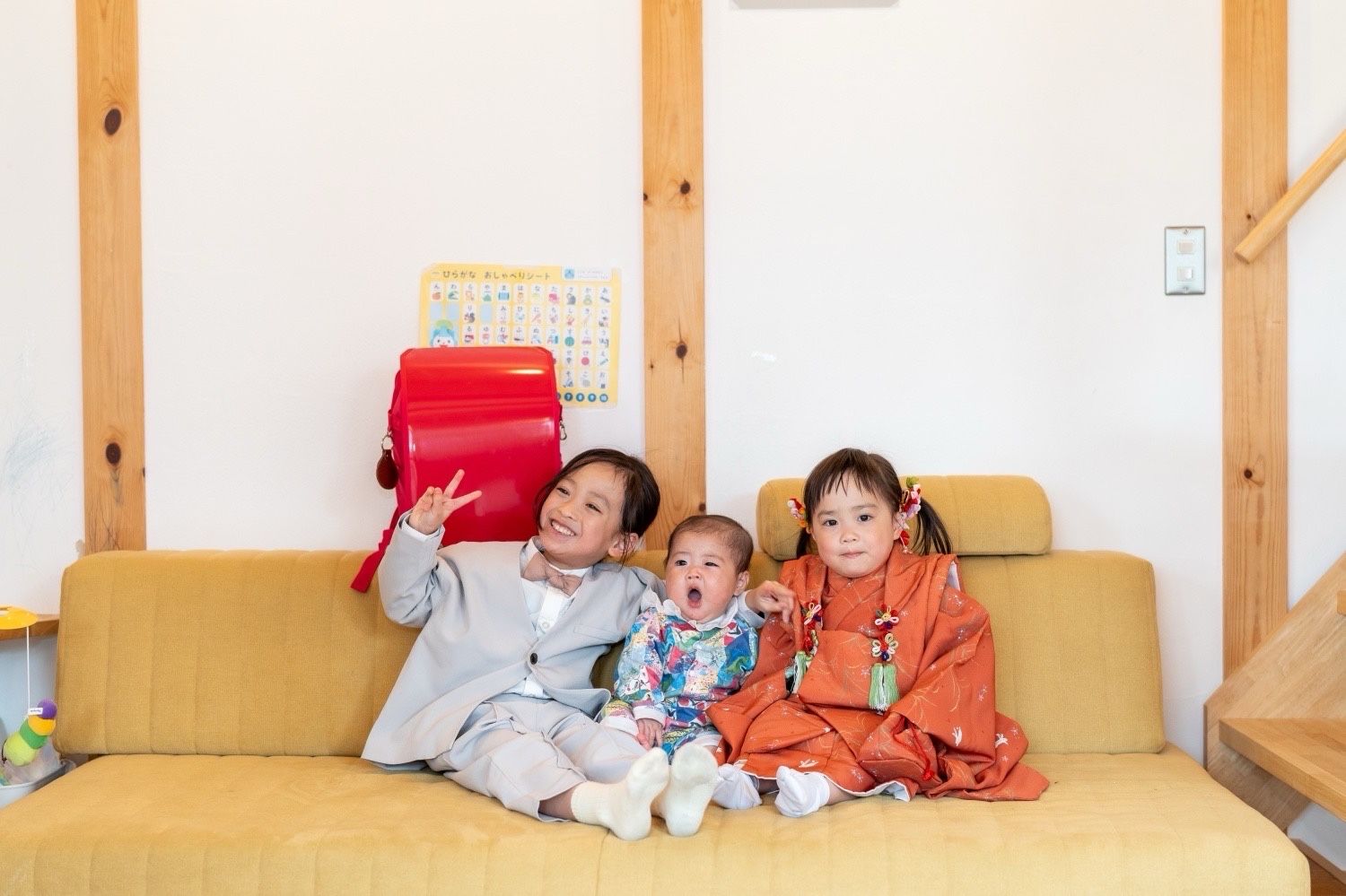 本日のお写真はご自宅で七五三と入学、生まれた赤ちゃんと!!