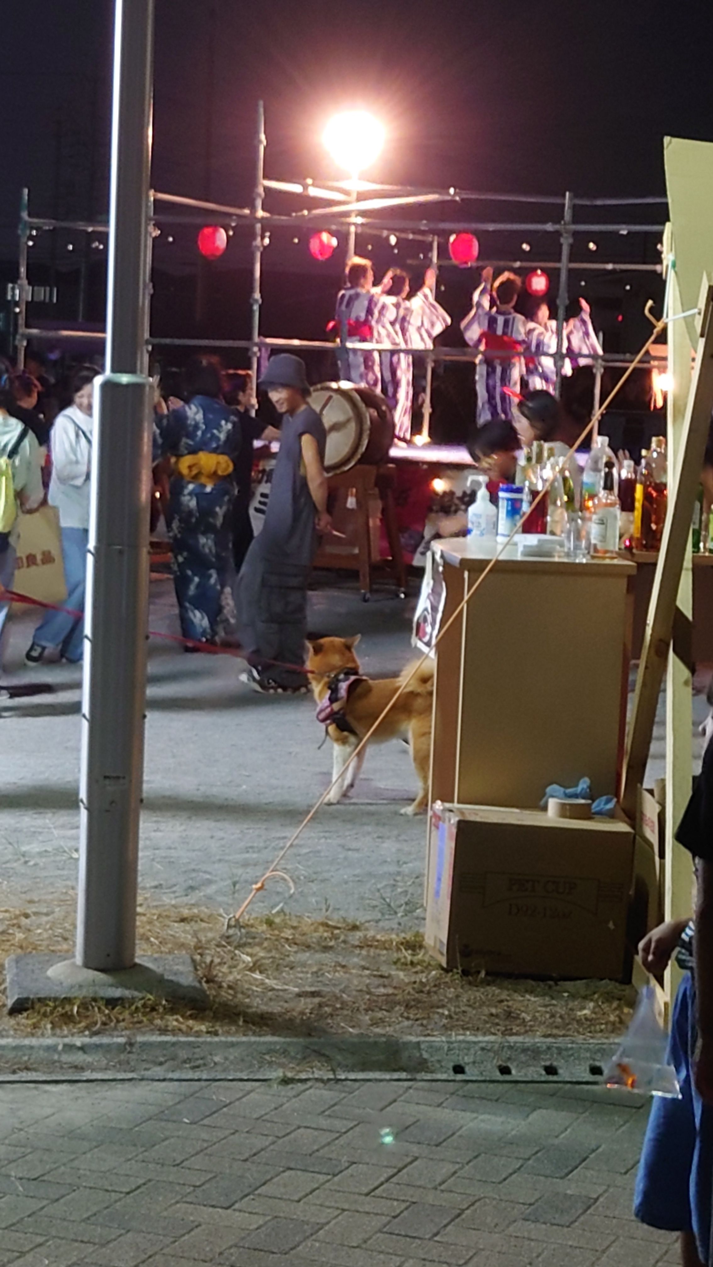 地元の友人と合う予定があり友人の家に行くと、「近くの公園で祭りやってるよ?」と言われたので久しぶりにお祭りというものに行ってきました。地元の方が集まるような小さな祭りでしたが、屋台やちびっ子達が遊んでるのを見て、自分も小さい頃よく行ったなぁと遠い目になっていました。↓盆踊りに注目する犬さん