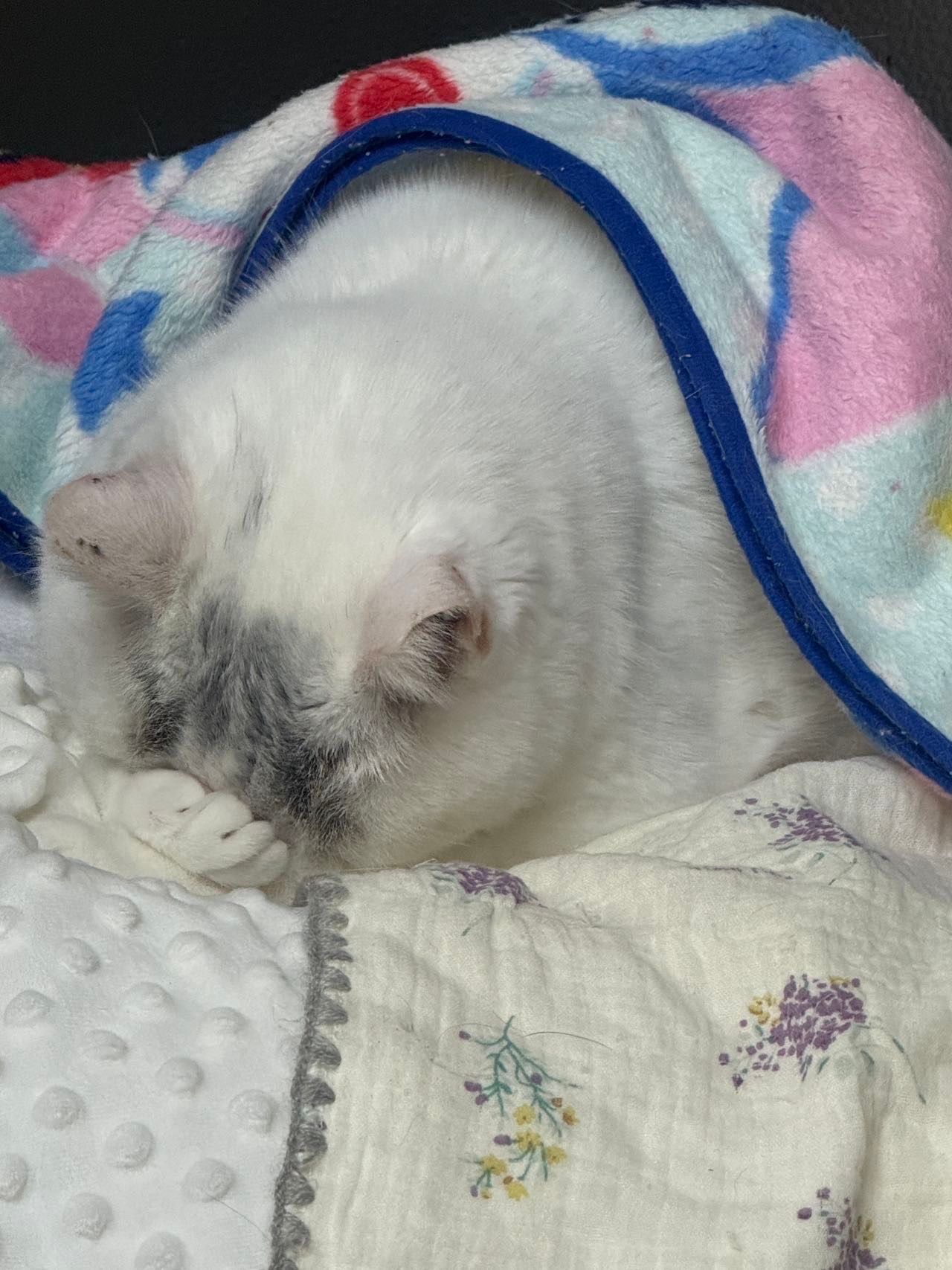 きちんと洗ってから、常連のお客様へお譲りしたところ、保護猫ちゃんが安心して使ってくれているお写真をいただきました。