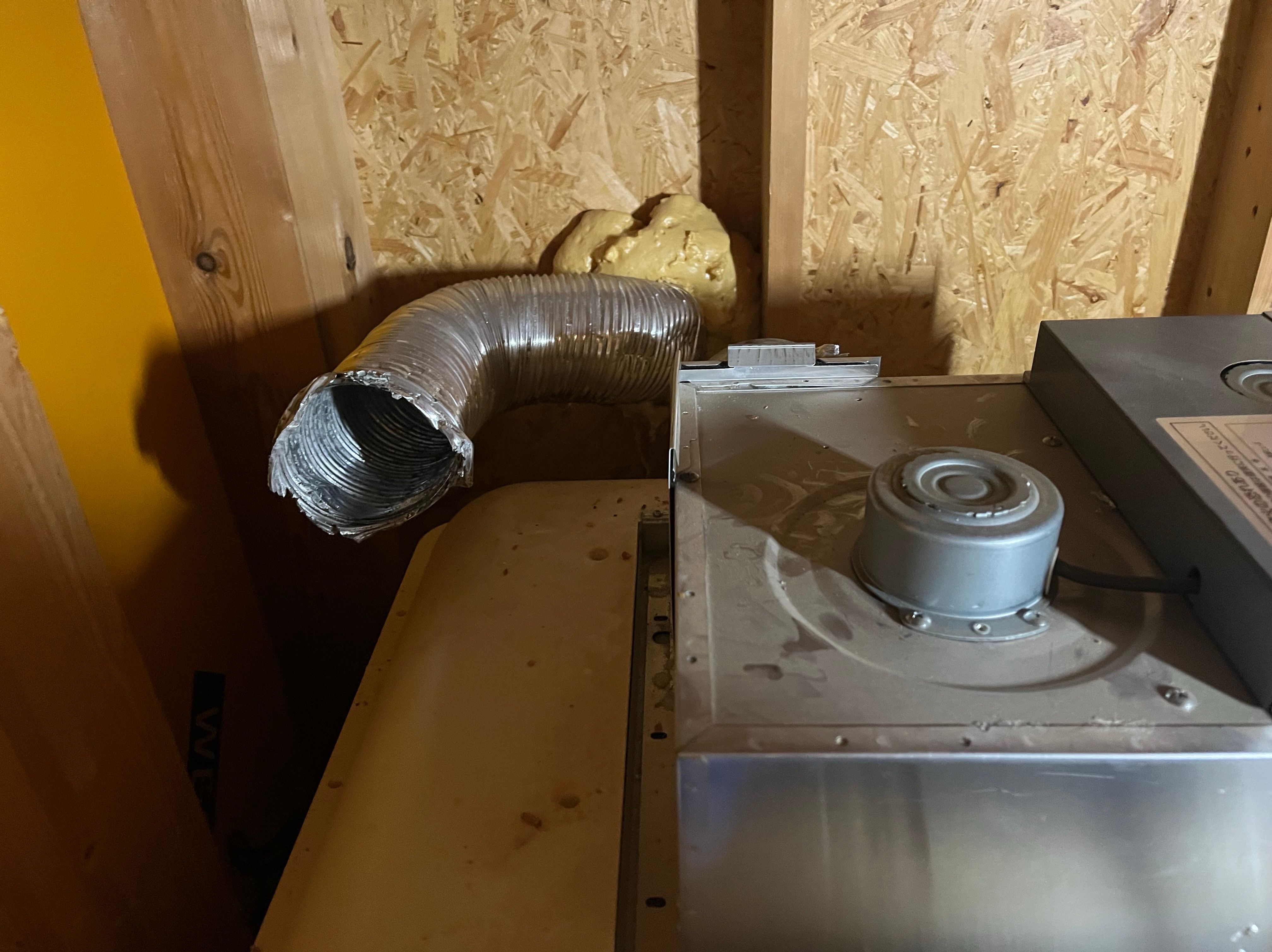 既存の排気ダクトが短く、延長が必要となりましたが、お客様に状況をご理解いただき、お時間を頂戴して材料を調達することができました。