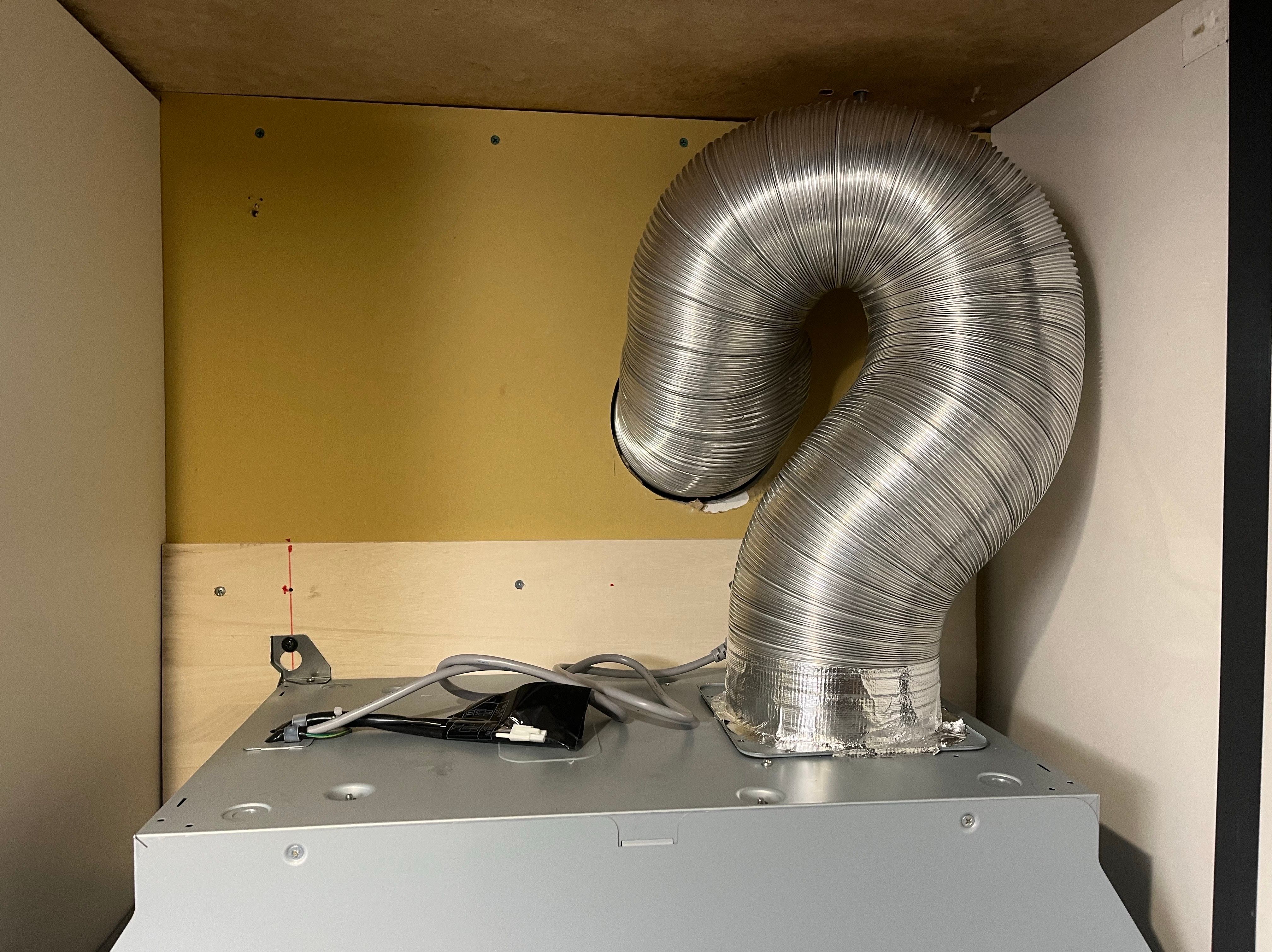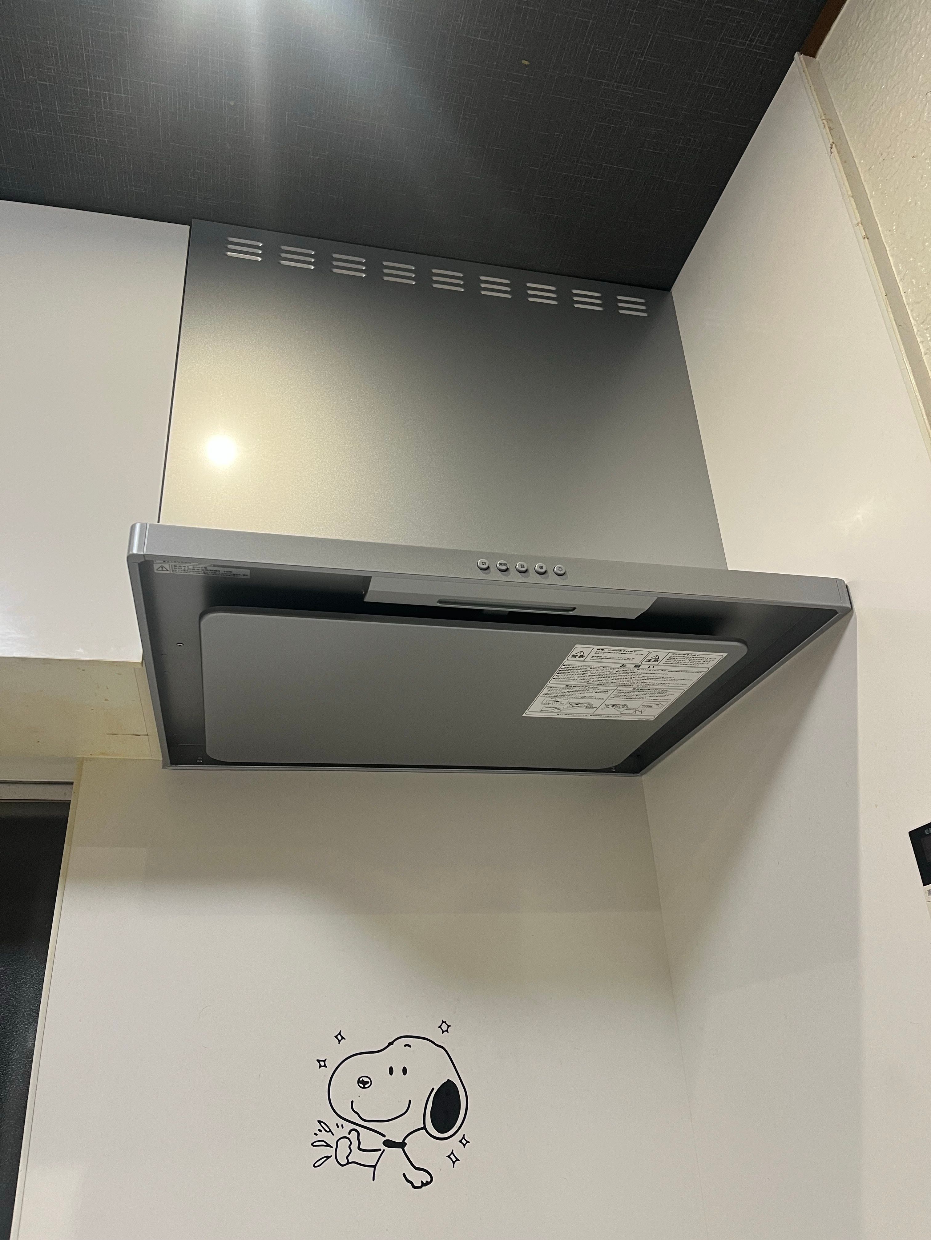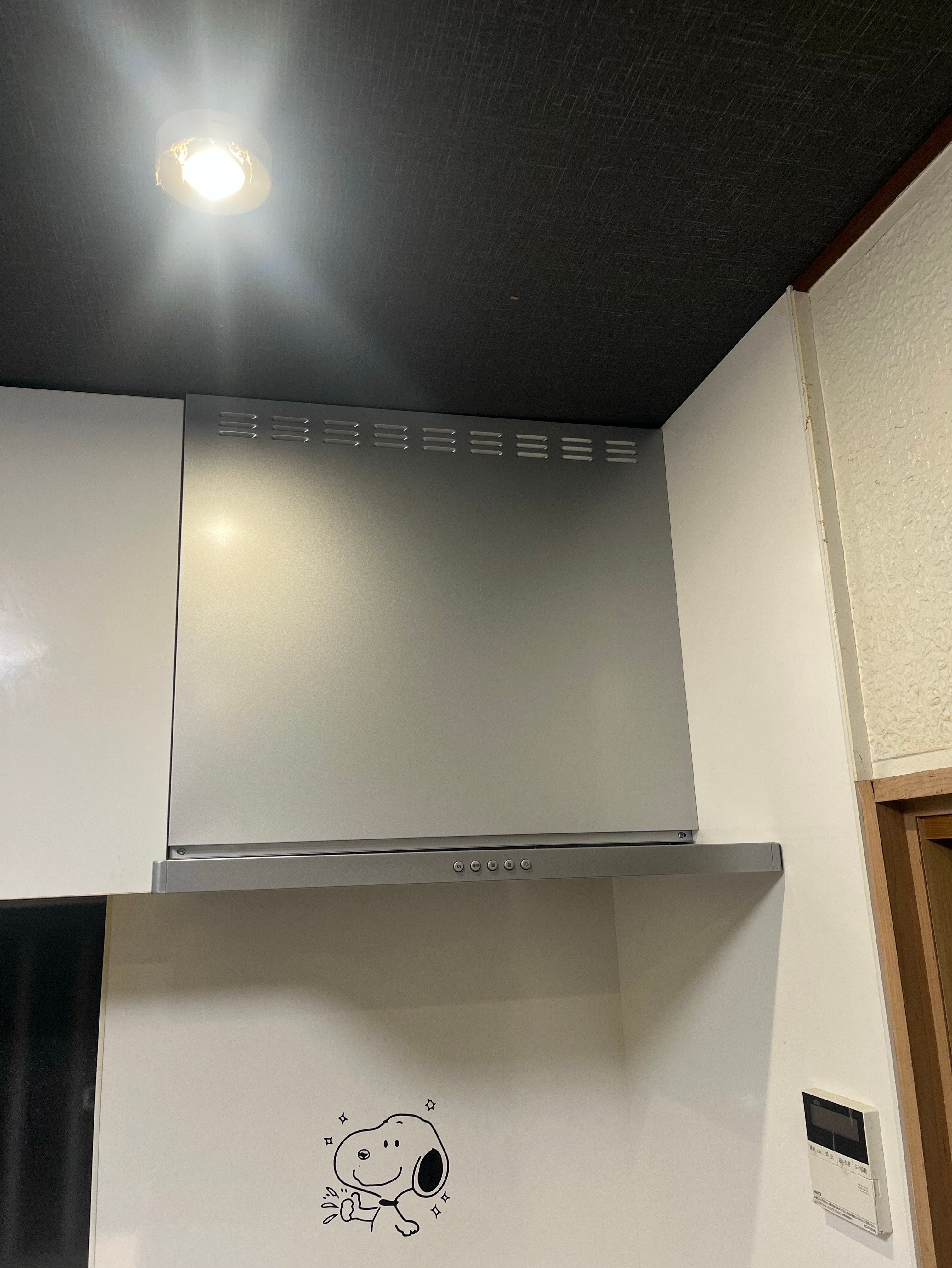 その結果、レンジフードが約10ミリ前に出る形となりましたが、ご了承のうえで作業を進めさせていただきました。