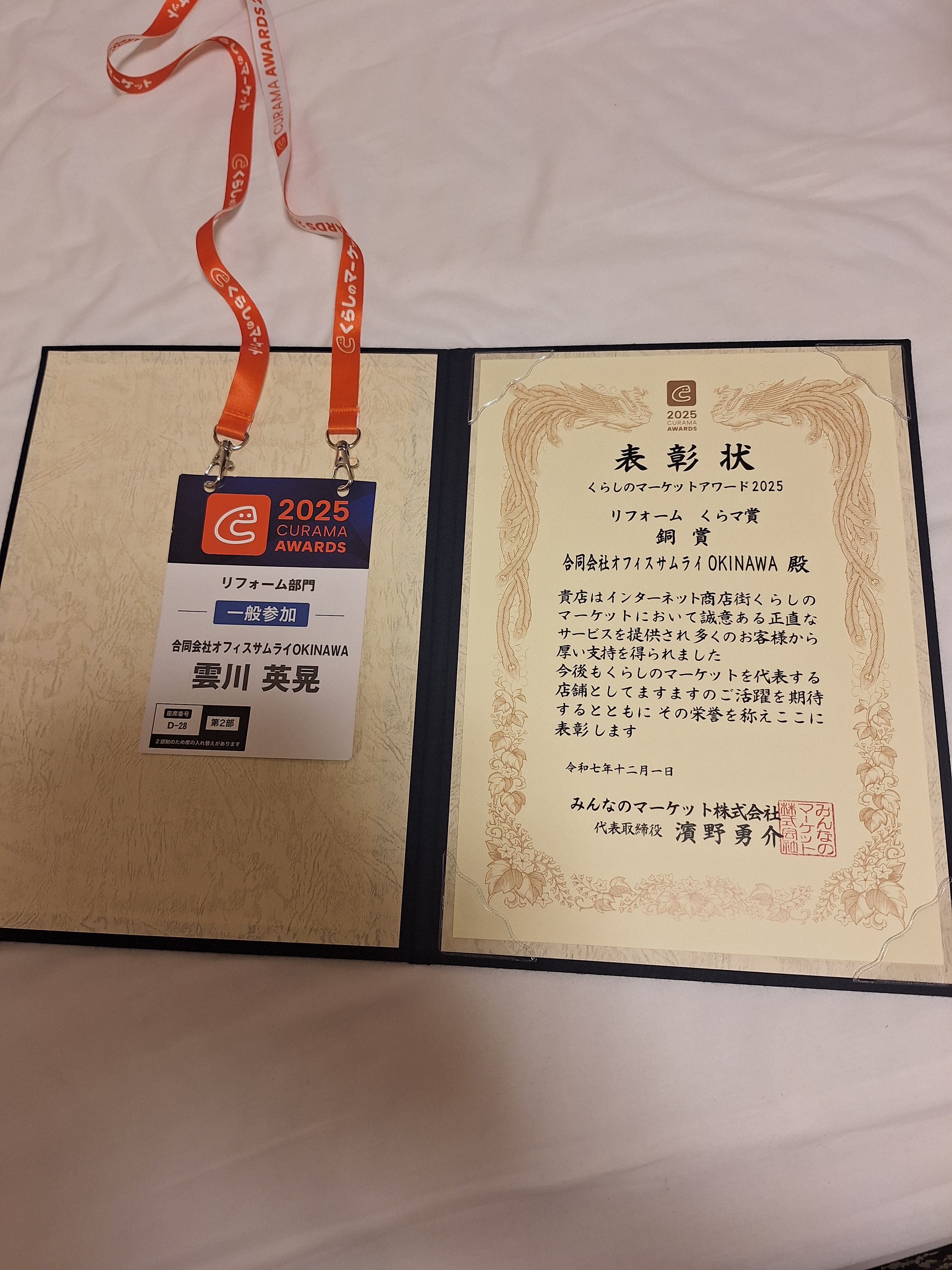 12月1日に くらしのマーケットアワード2025でくらマ賞の銅賞を頂いて、これは全国11万店舗の出店者の中から第3位という、大変な栄誉です。