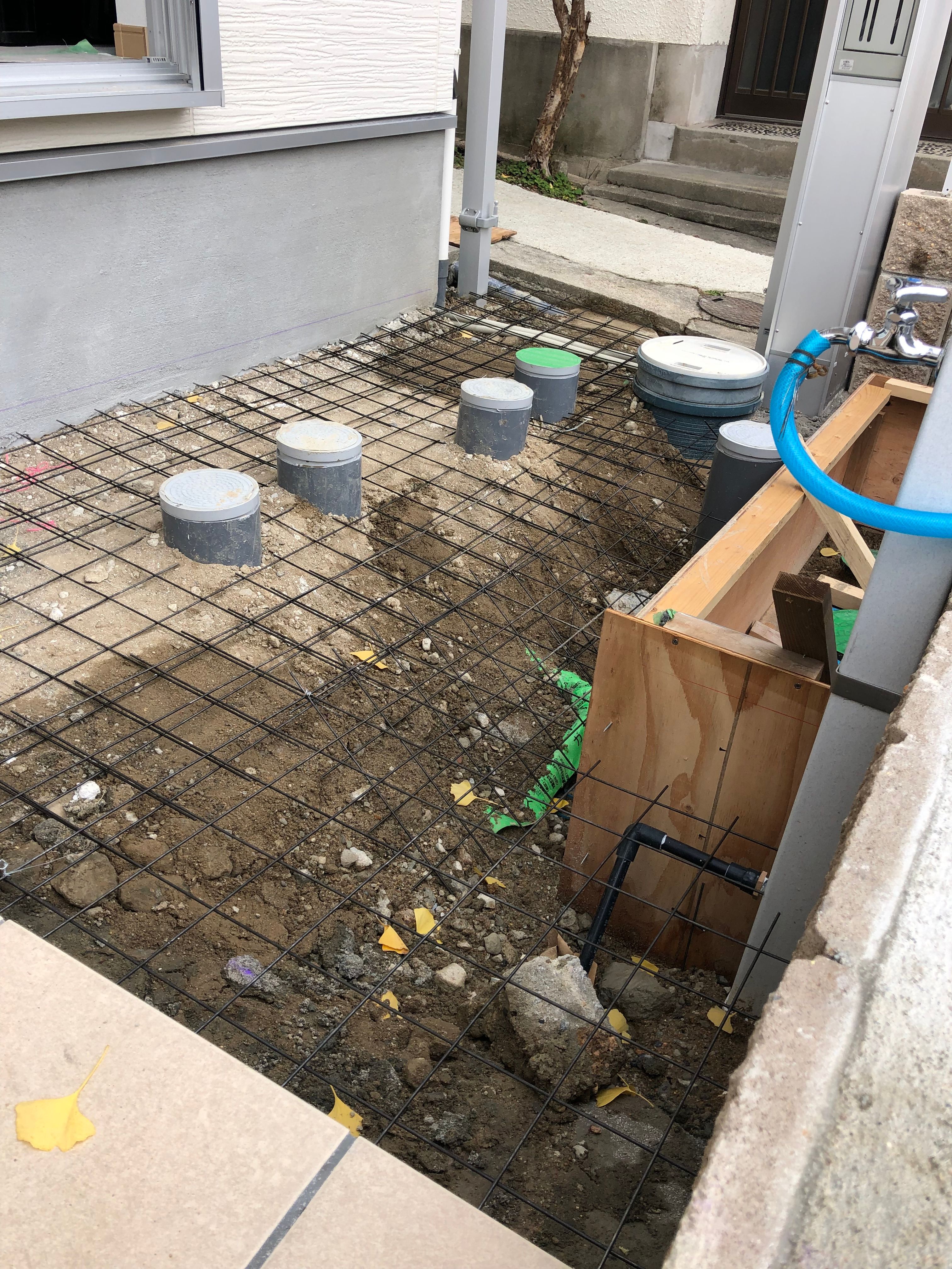 土間コンクリート、準備がたいへん。そして、流し込み後も心配。雨が振らないか、そして凍らないか。 -1度や−2度の天気予報を見るとこれは心配^^;
