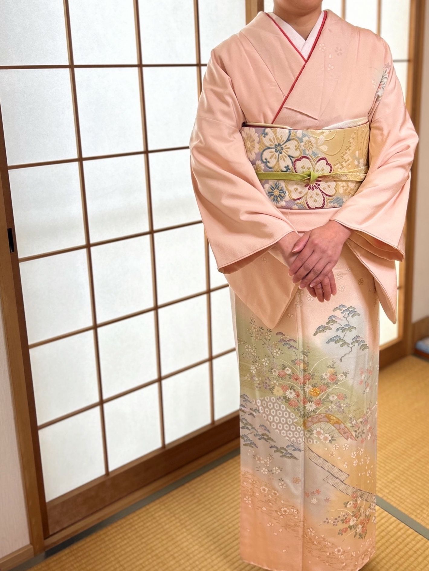 春らしく爽やかな訪問着のコーディネートが素敵なお母様🌸
