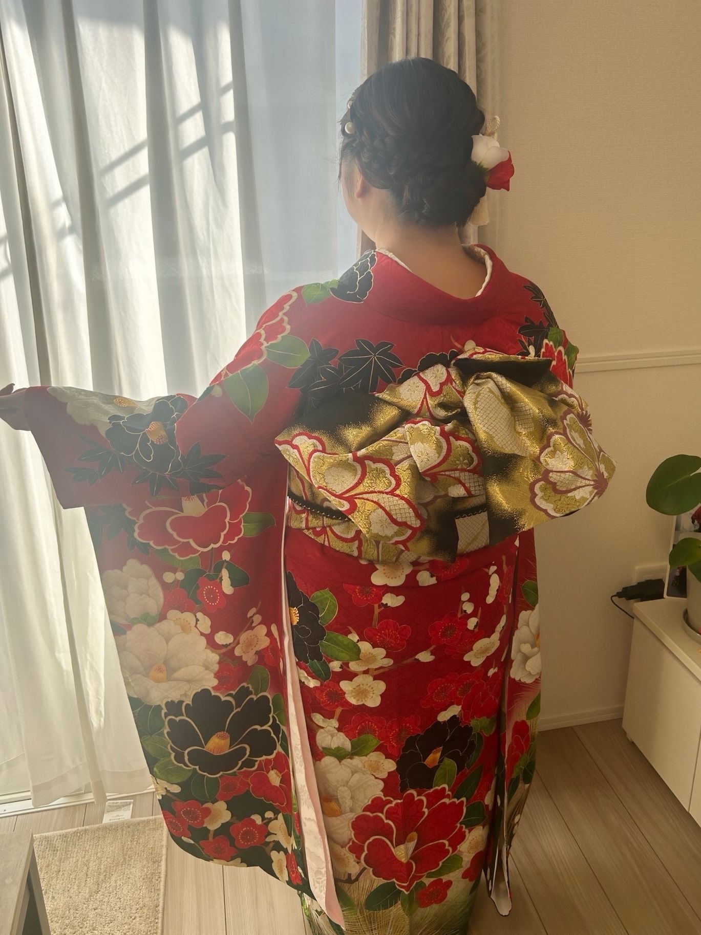 2026年最初のご依頼です御両家顔合わせ💐パッと目を惹く華やかなお振袖椿のデザインが素敵でキュートなお嬢様にとってもお似合いでした✨この度は大切な一日のお支度をお任せいただき誠にありがとうございました末永いお幸せを心よりお祈りいたします☺️