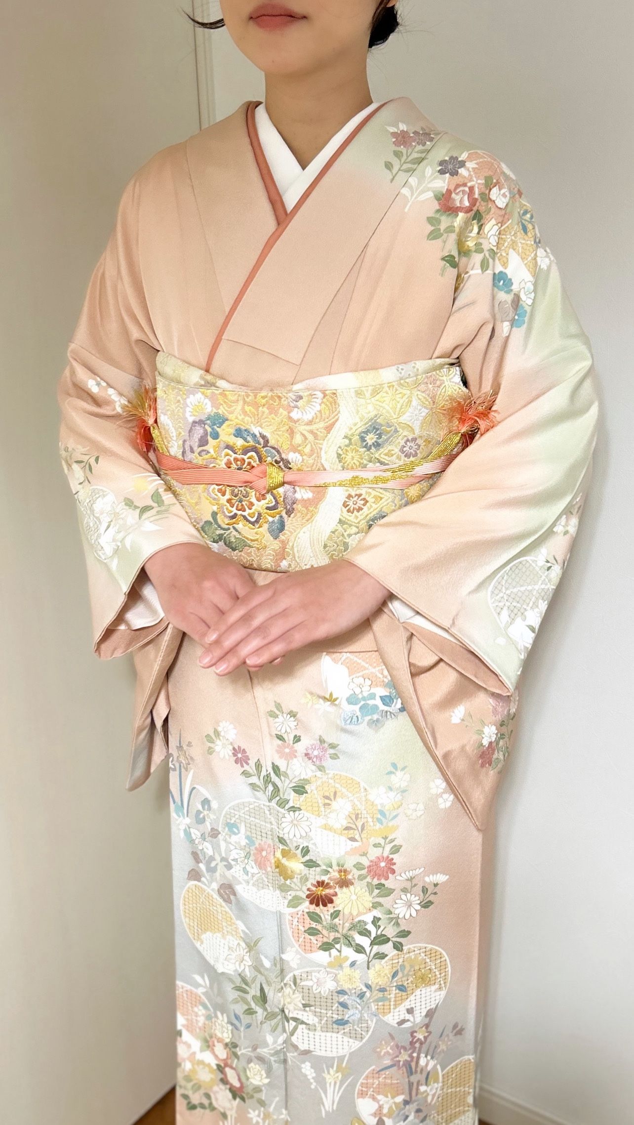 優しく華やかなサーモンピンクの訪問着がお似合いで