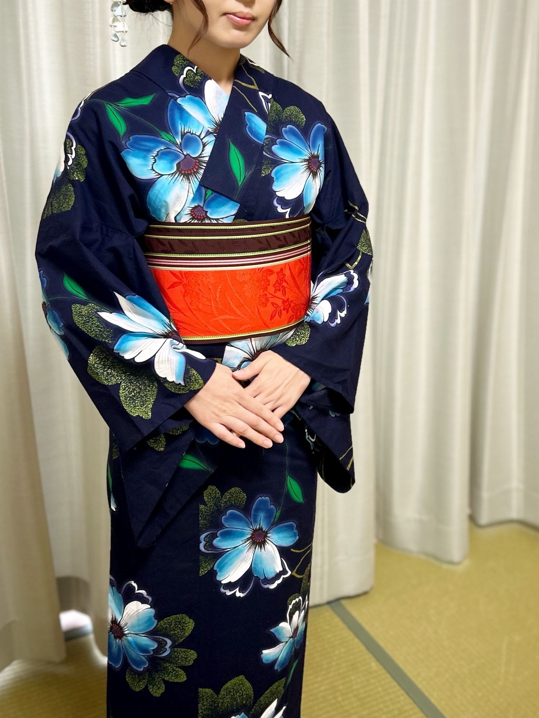 藍色の華やかな浴衣に