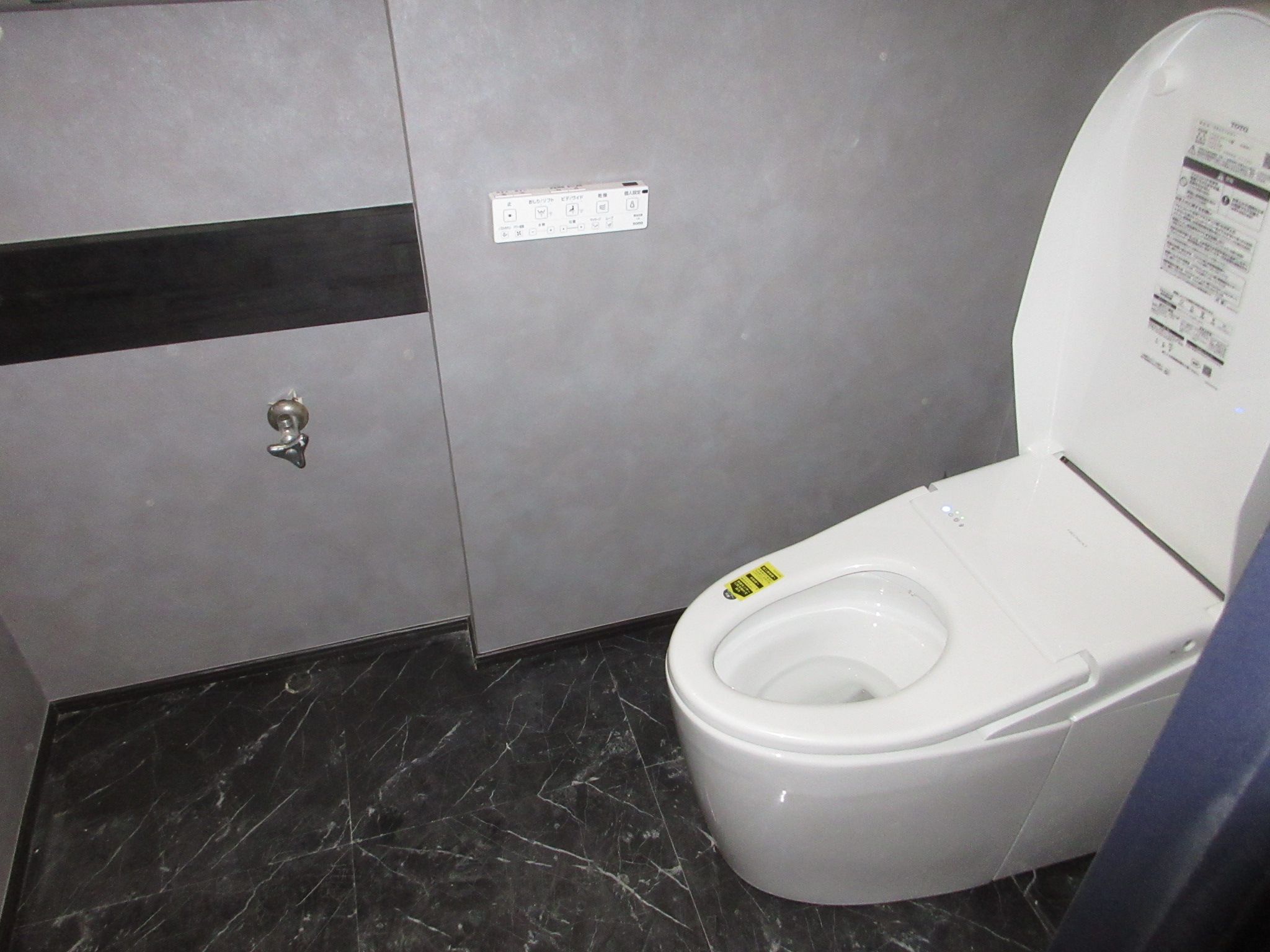 トイレドアの交換、ボトル棚、収納棚撤去での造作工事、トイレ交換、照明新設・交換、コンセント新設、換気扇交換、カガミ交換、巾木・廻り縁交換で床はフロアータイル全面貼、天井・壁・カウンターのクロス貼替等です。