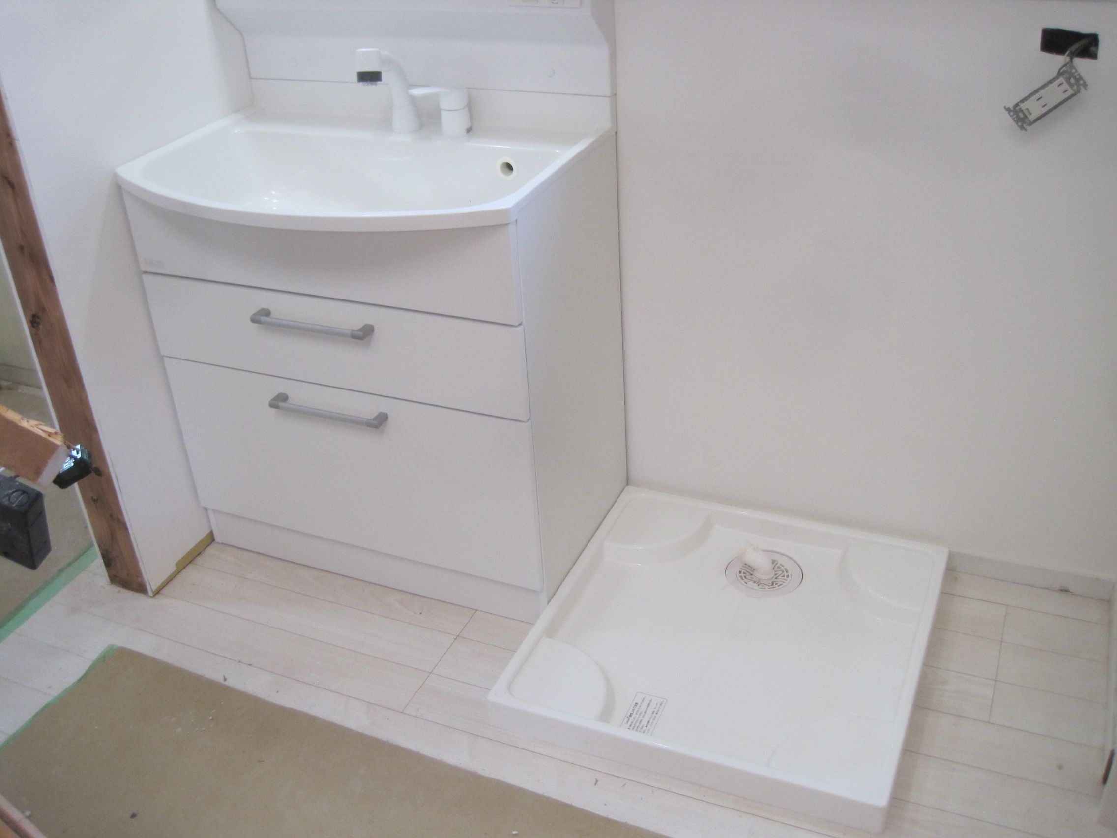 後はリフォームガッパがキッチン設置、洗面化粧台・洗濯防水パン設置等と仕上げ工事ですが、