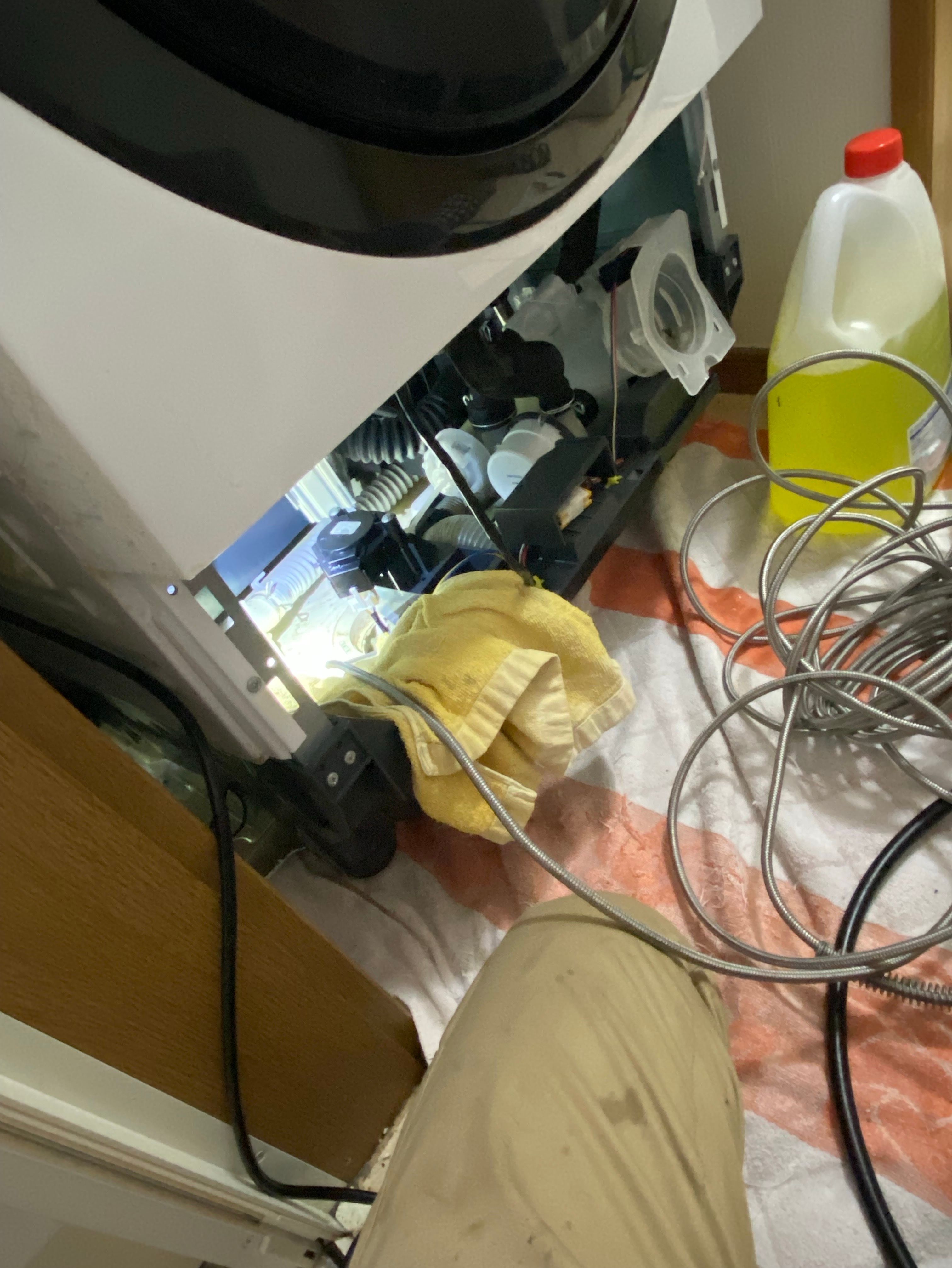 排水管洗浄業者も重くて動かせない洗濯機のトラップ洗浄を断ります。
