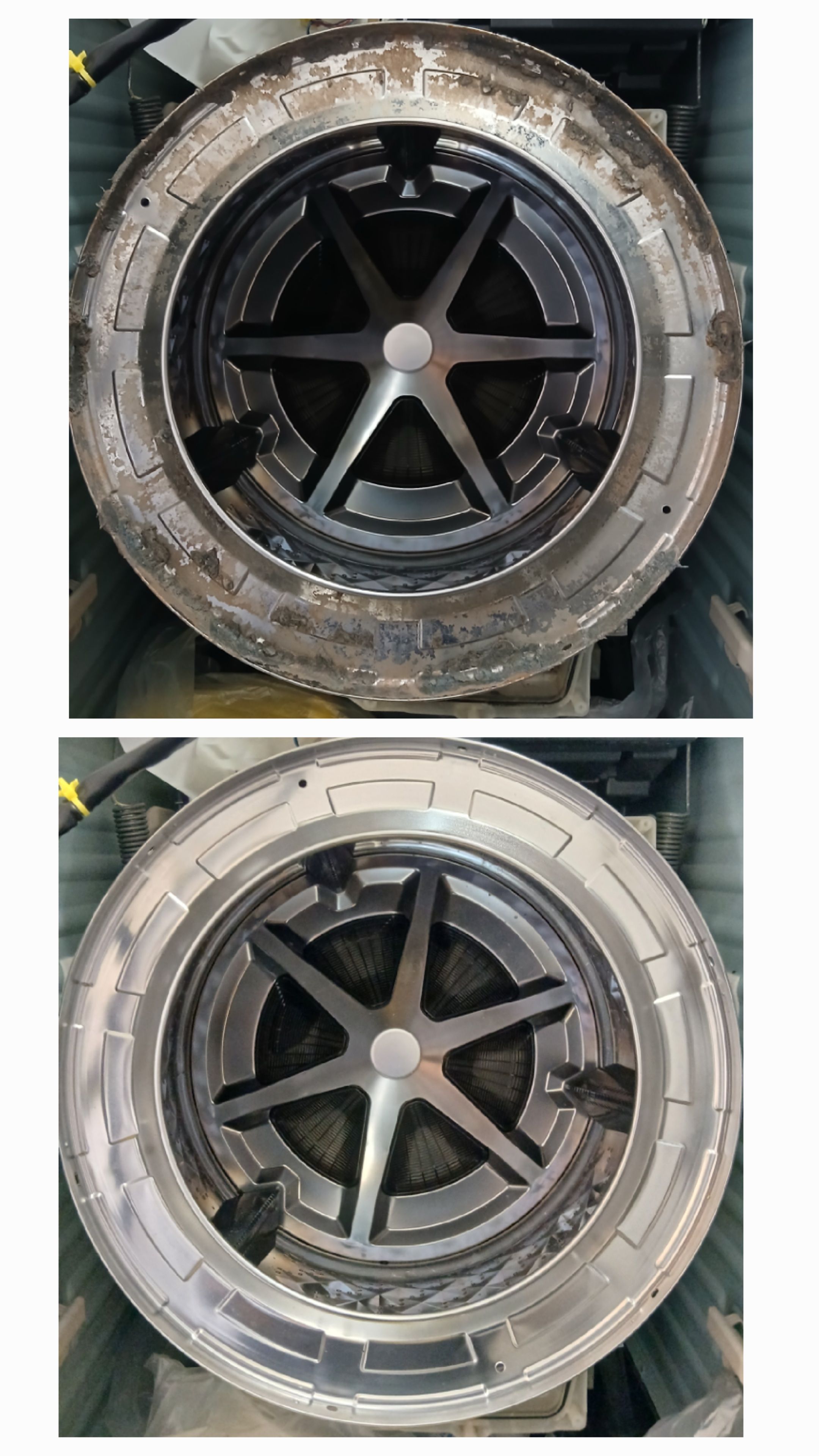 ドラム槽のステンレス部分にも汚れが固着していました。