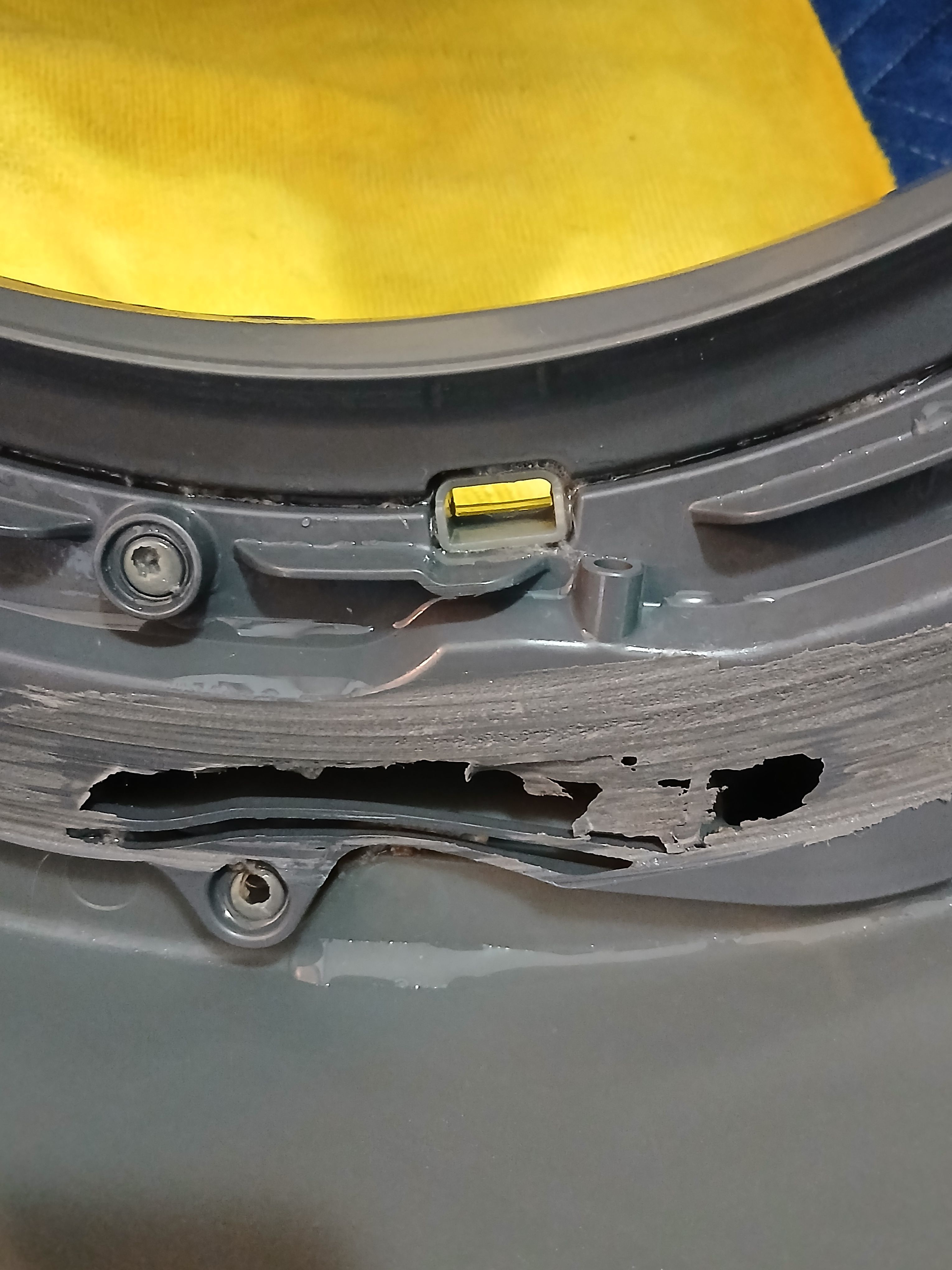 脱水受けカバーが削れ、穴が空いている状態でした。