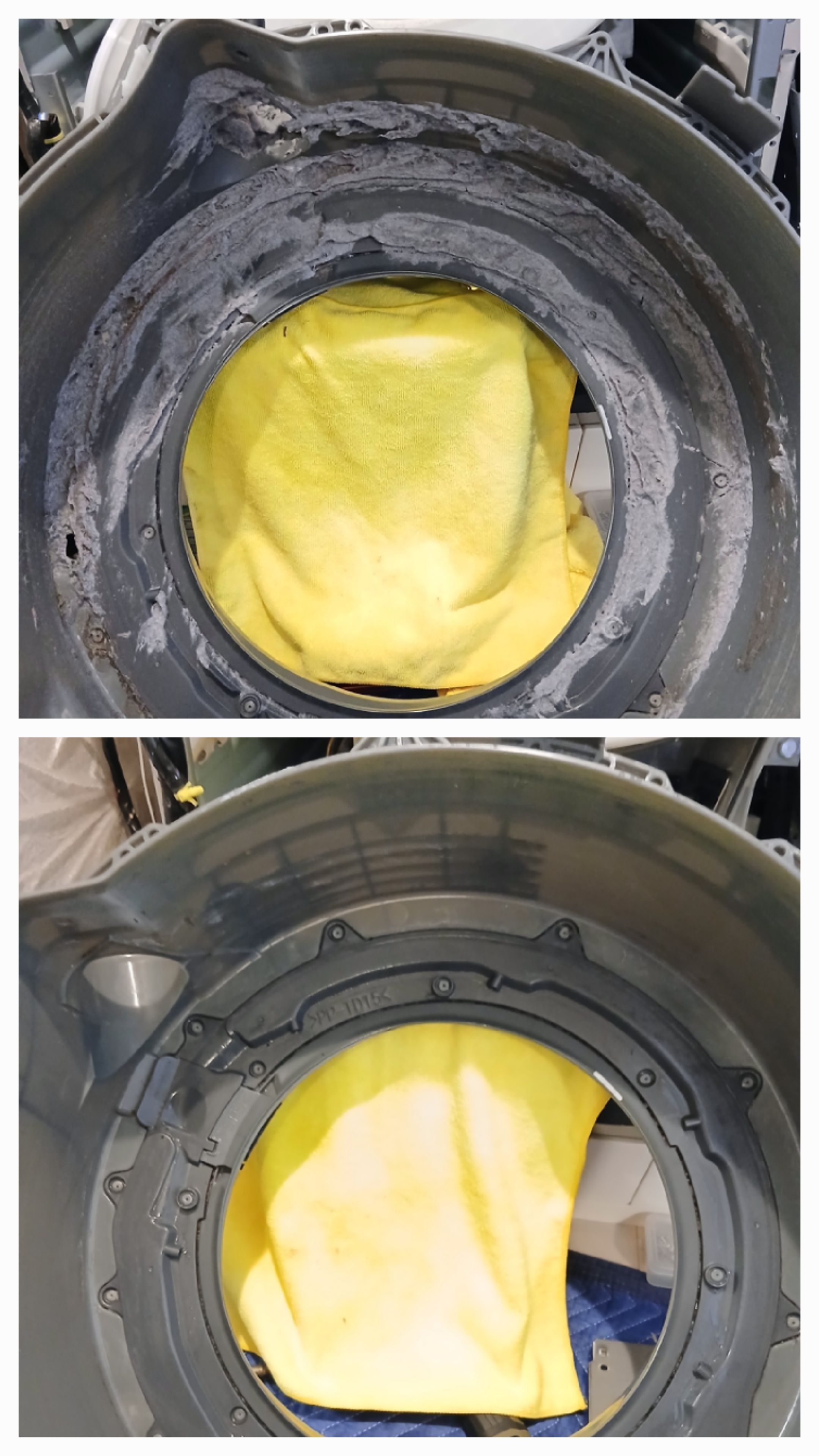 Panasonicドラム式洗濯機の分解クリーニングを行っています。