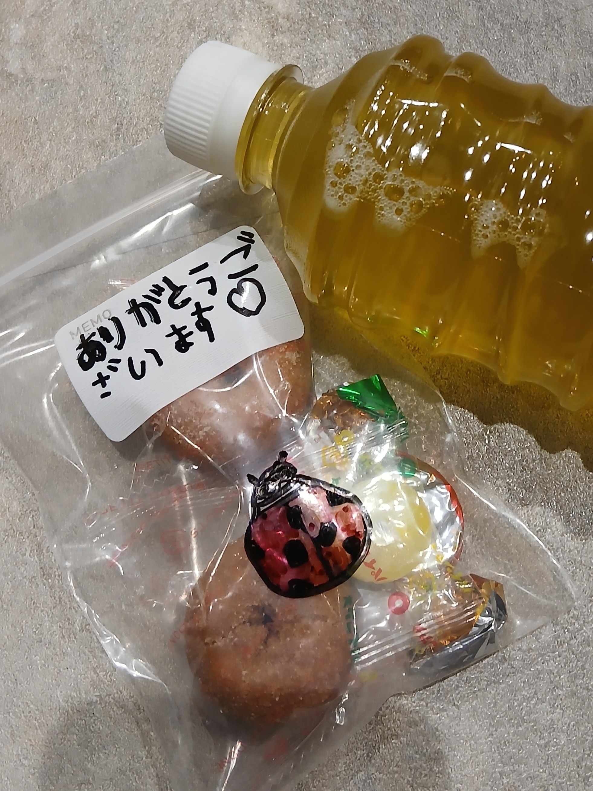 お会計も終わり、帰り際に可愛い女の子からお菓子とお茶のプレゼントをいただきました☆