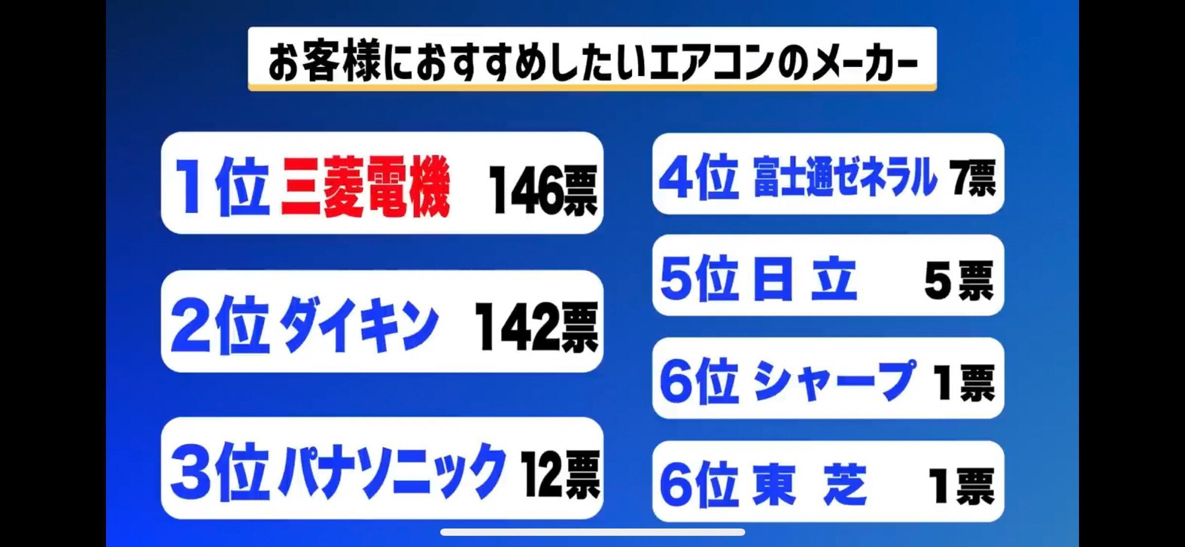 一方、三菱のエアコンは一度も故障したことがなく、サポートに連絡したこともありません。