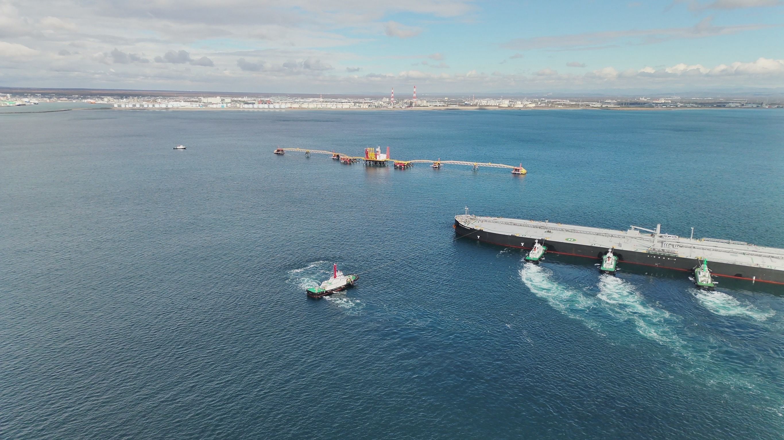 出光様の大きなタンカーを6隻の船で押したり引っ張ったり!