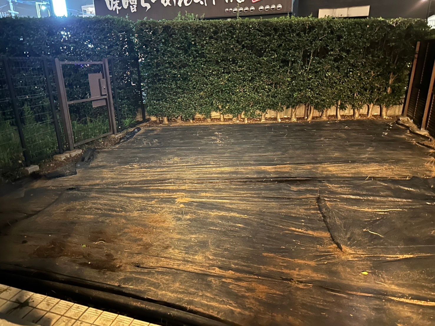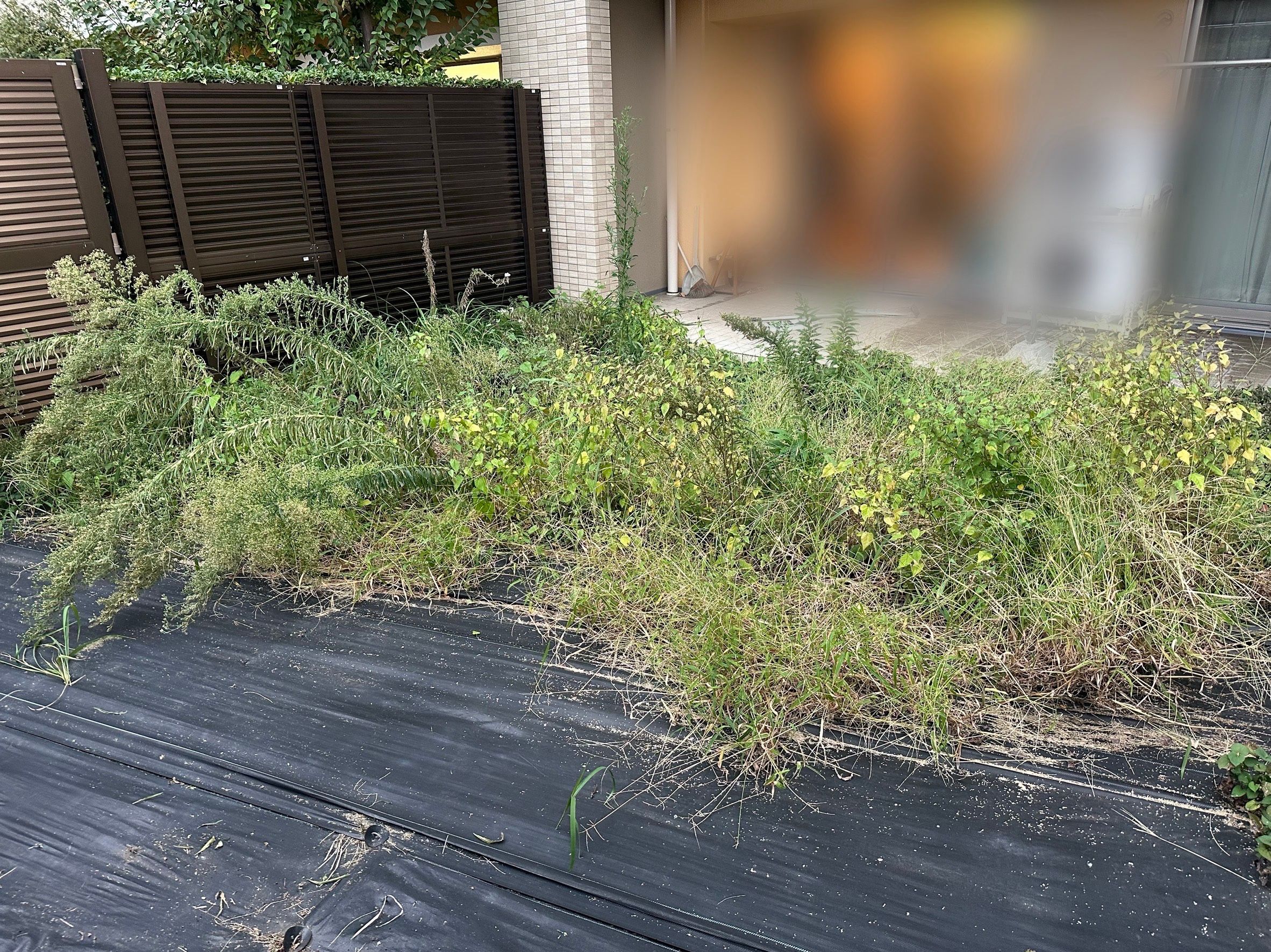今回の現場は防草シートを突き破って草が沢山生えてきていました