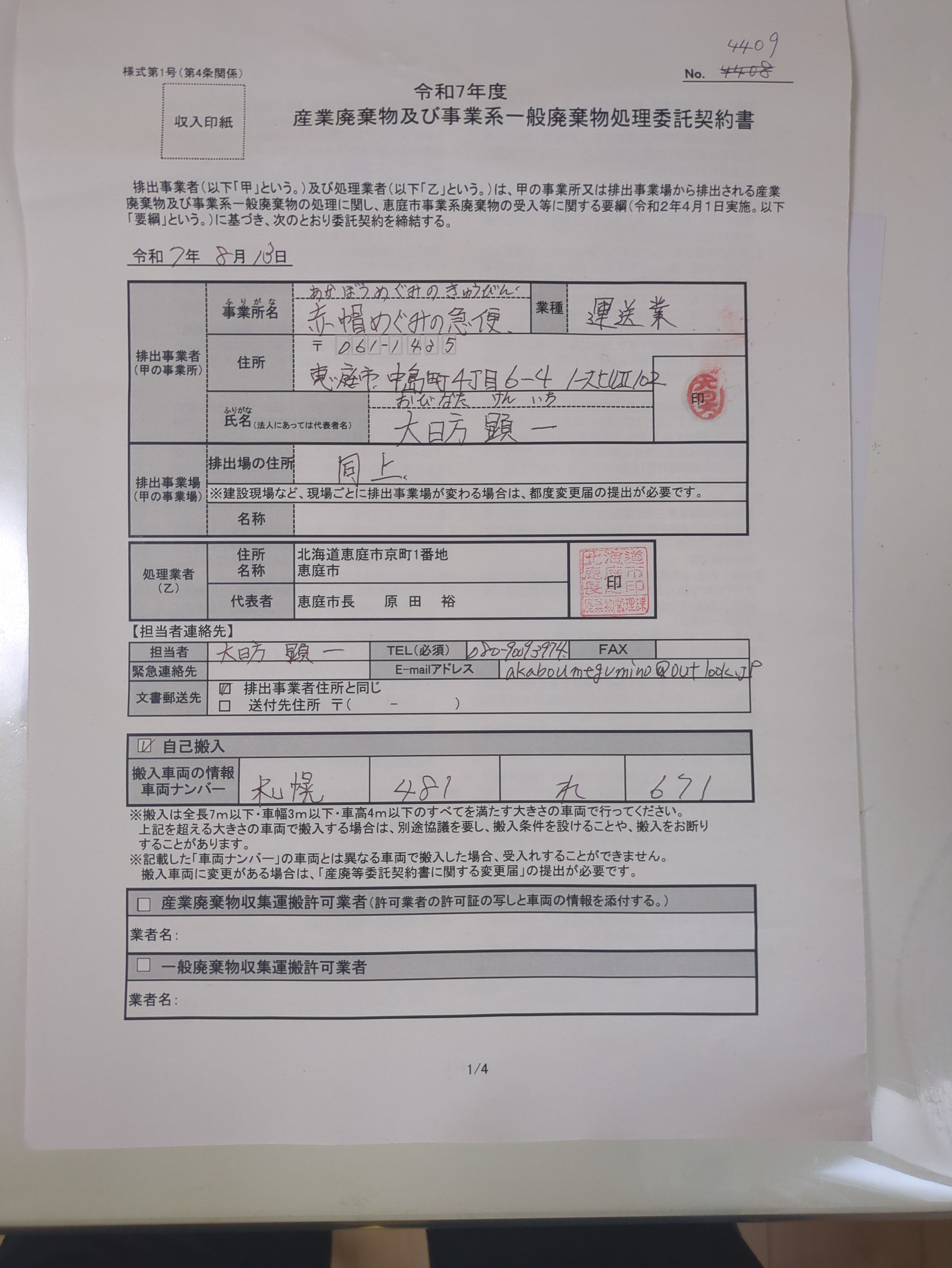 実家を大事に思うお客様の合間に、市役所で焼却処理施設に入れる契約をしてきました