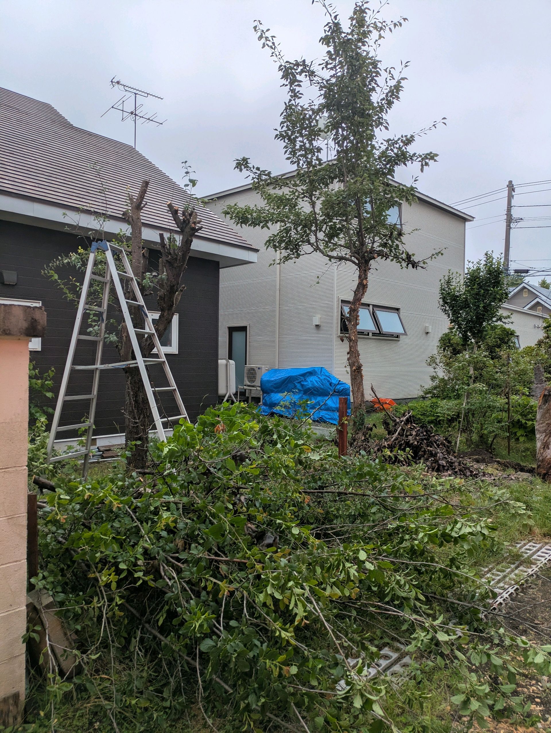 千歳市ではチェンソーで庭木の伐採をしたり