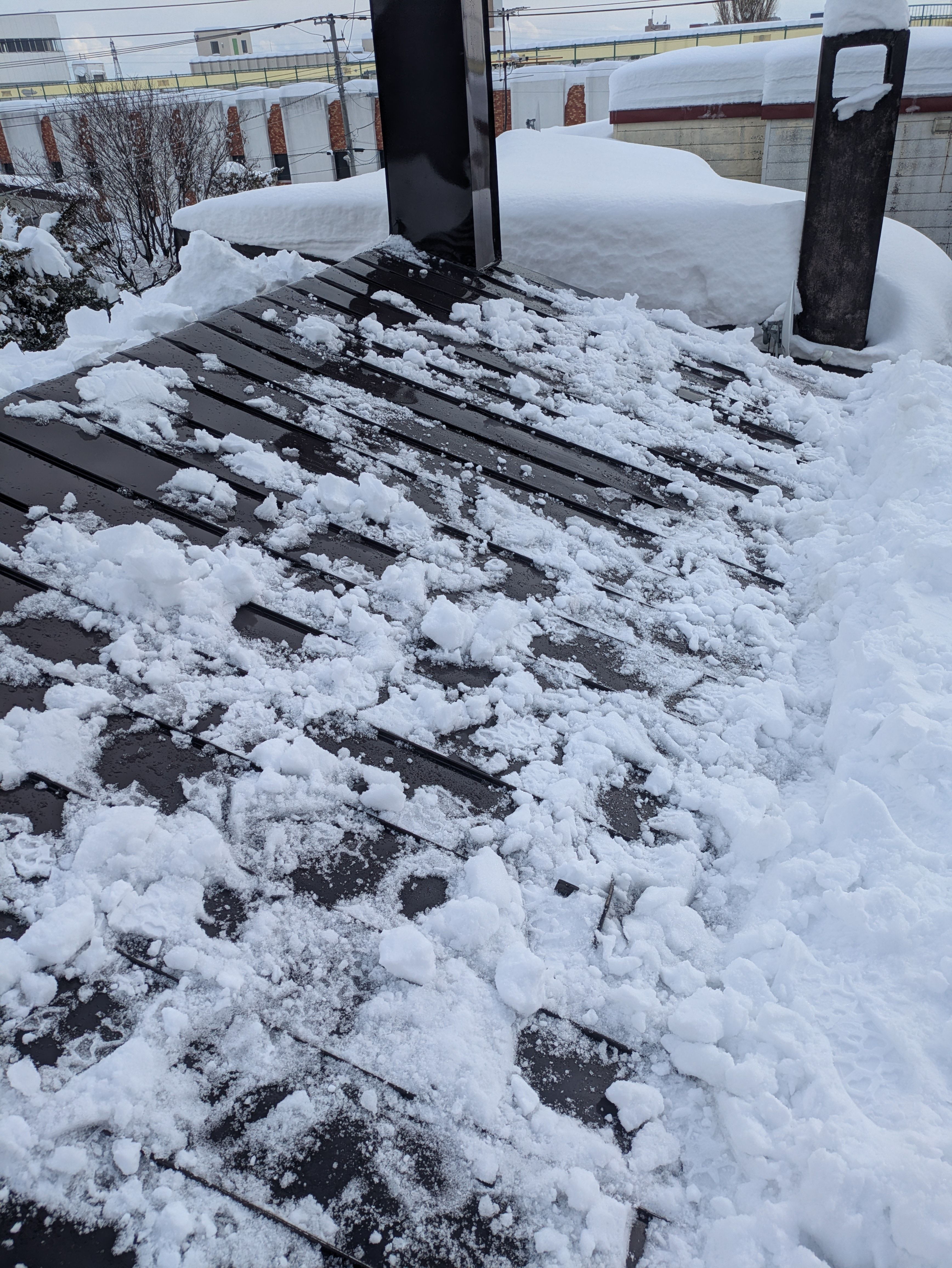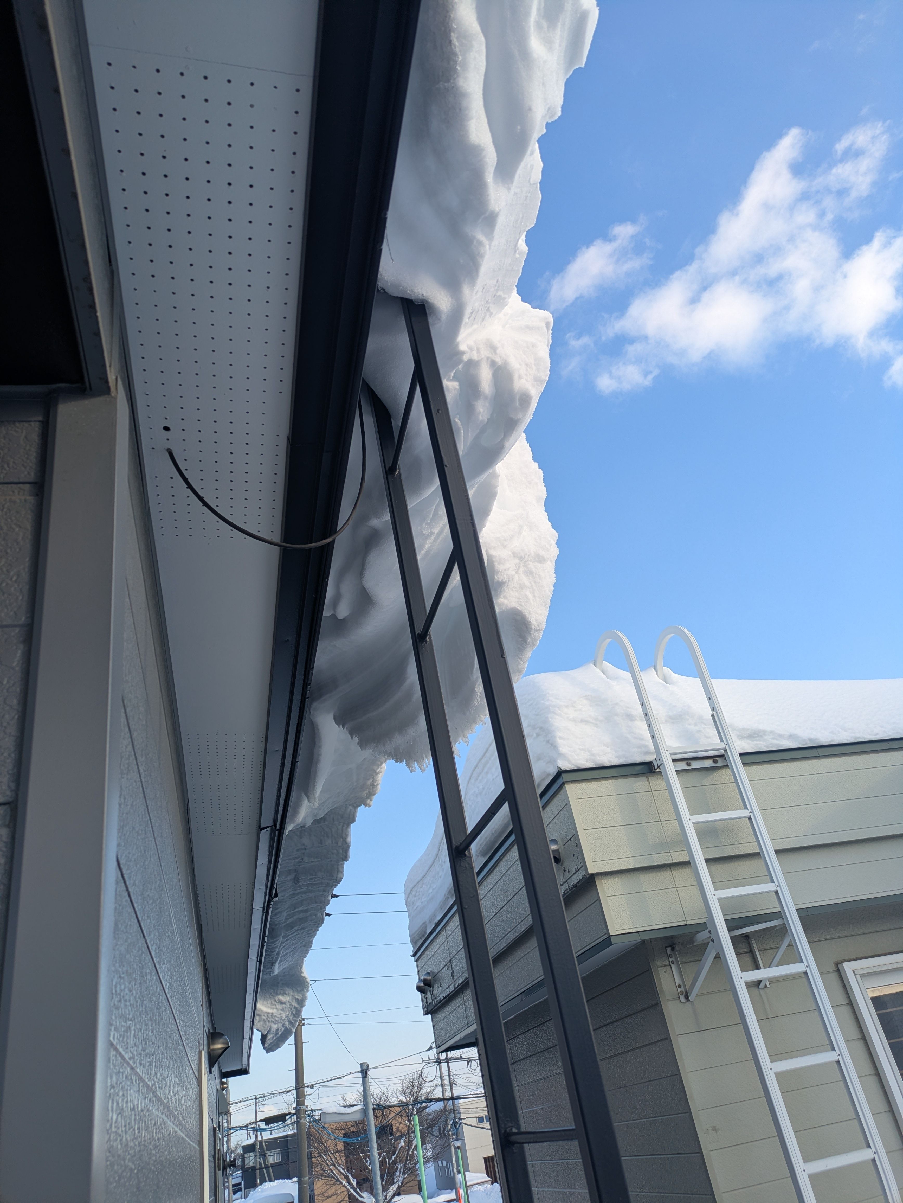 滑落を防ぎました、残りの雪は勝手に落ちる