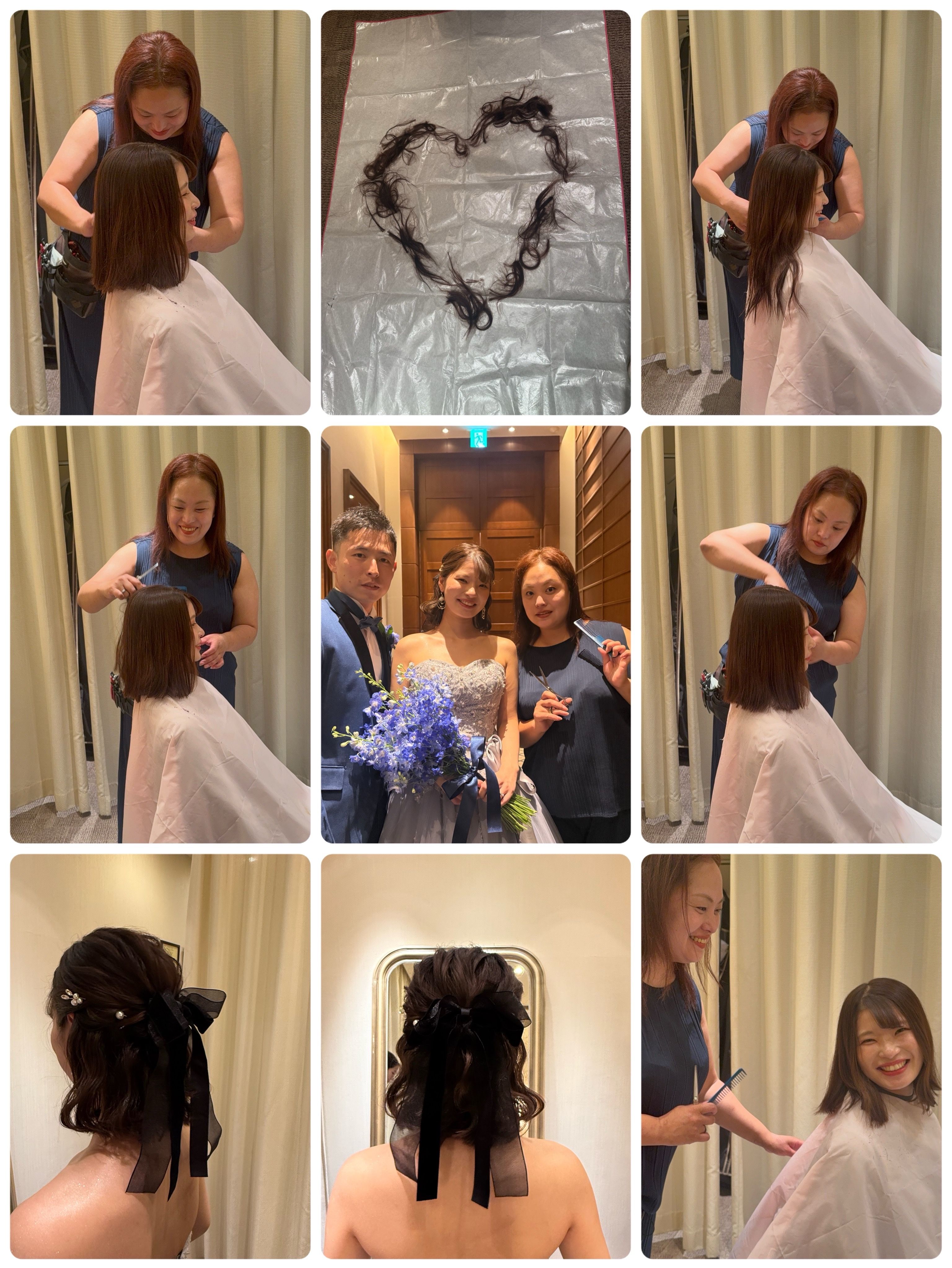 ブライダルヘアメイクの中座に、ロングスタイルからばっさりミディアムスタイル、ショートスタイルにヘアチェンジ!