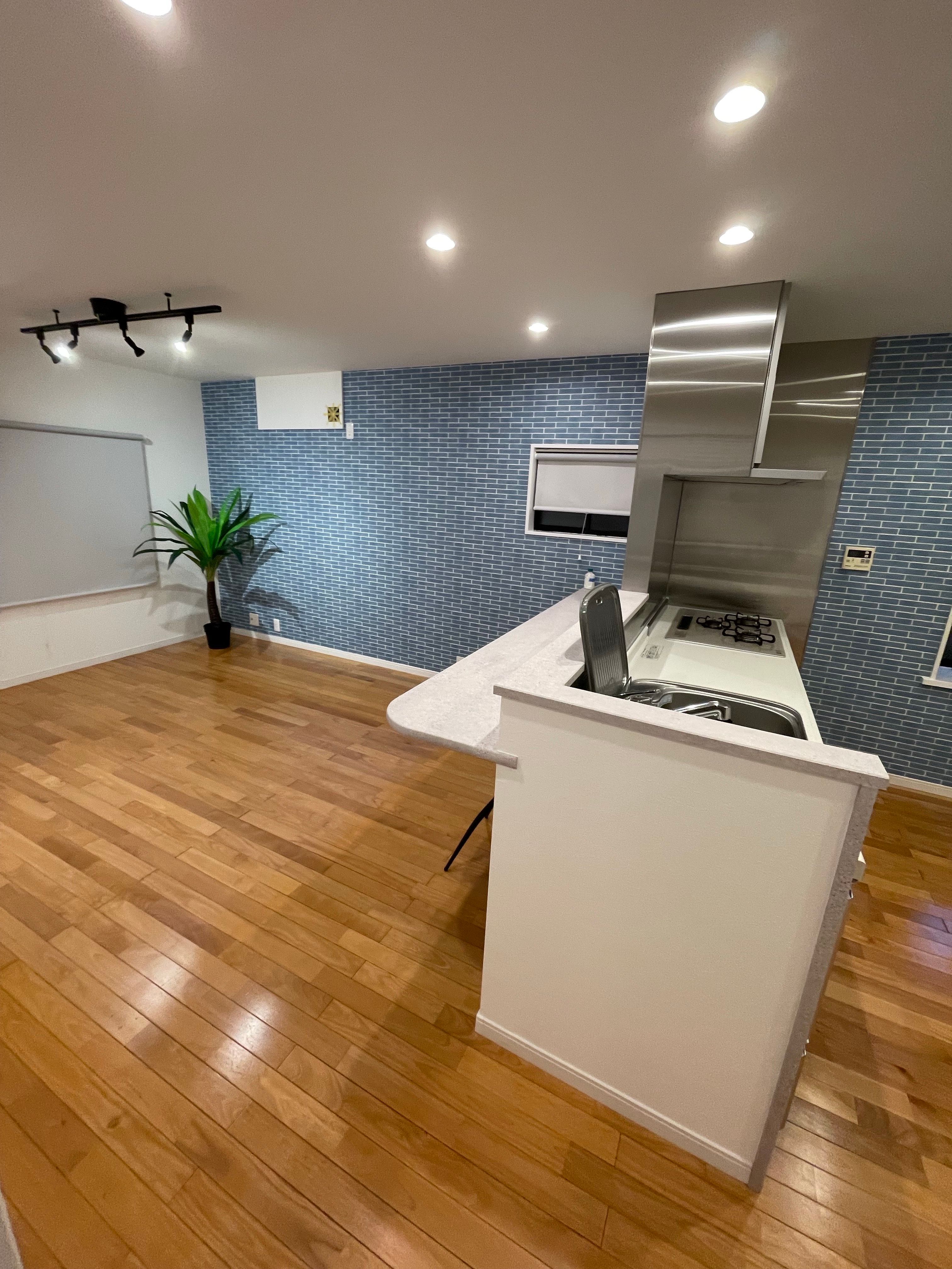 床は剥離磨きからのウレタンワックス、ポイントクロスは奥行きのあるタイル調。