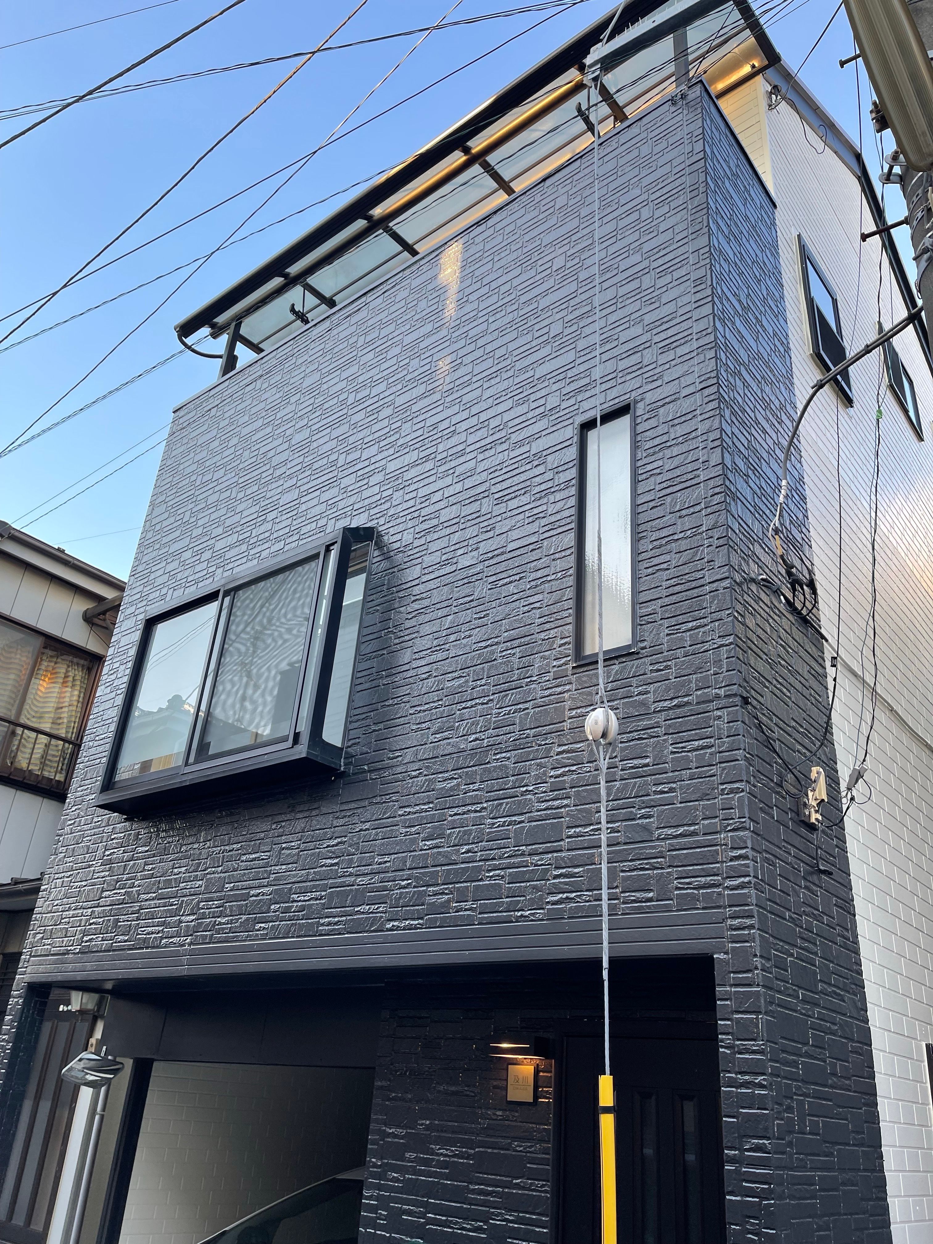 住宅に関しては全て行います。色の提案なども全てのります。お気軽にご相談ください。今回は流行りの黒半ツヤでしあげました。雨による黒筋の汚れが気にならないので、長くキレイを保ちます。