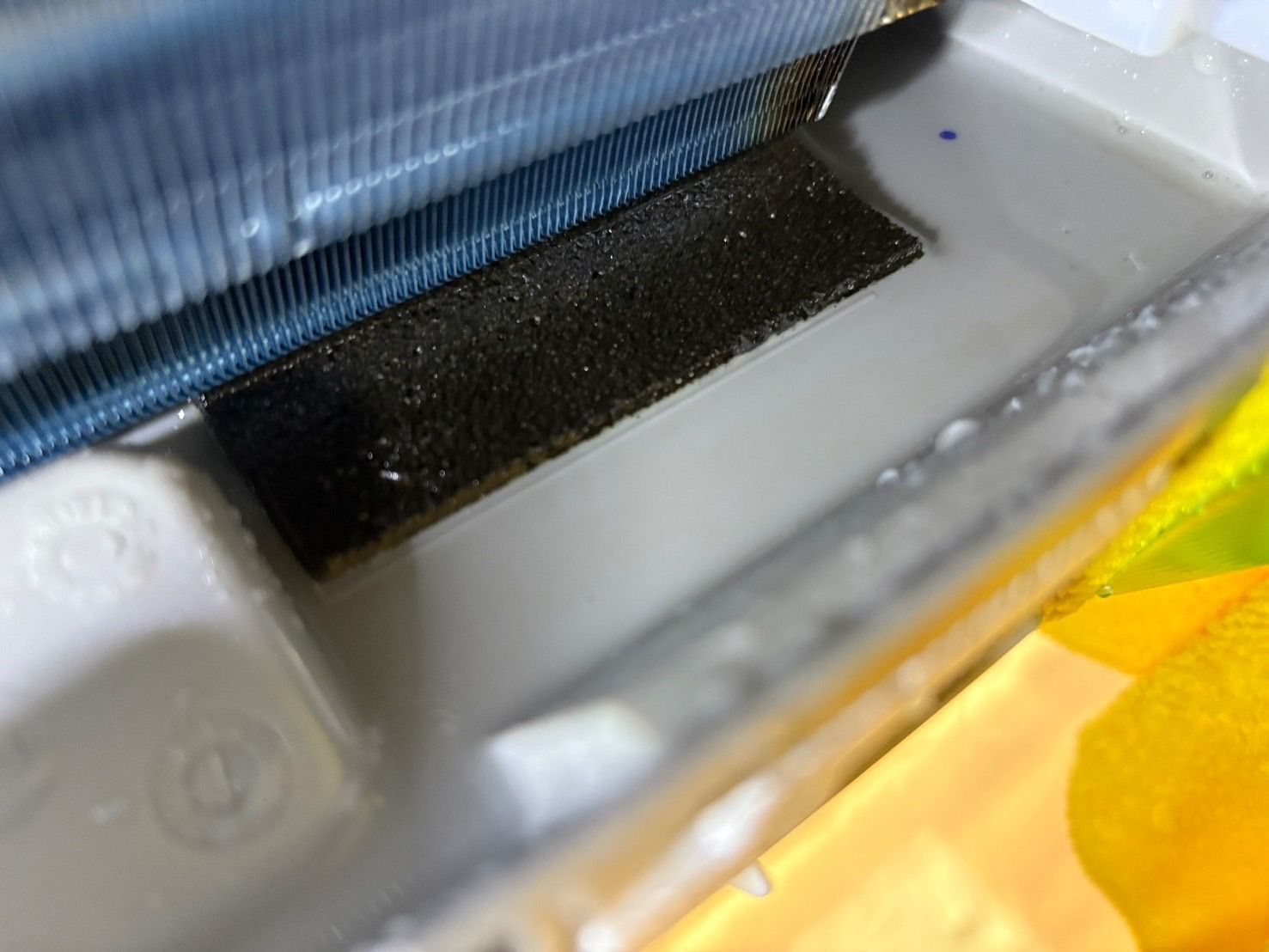 一見汚れが少ないようでも、使用した洗剤や排出された汚水の色を見ると、しっかり汚れが落ちているのがわかる状態でした。