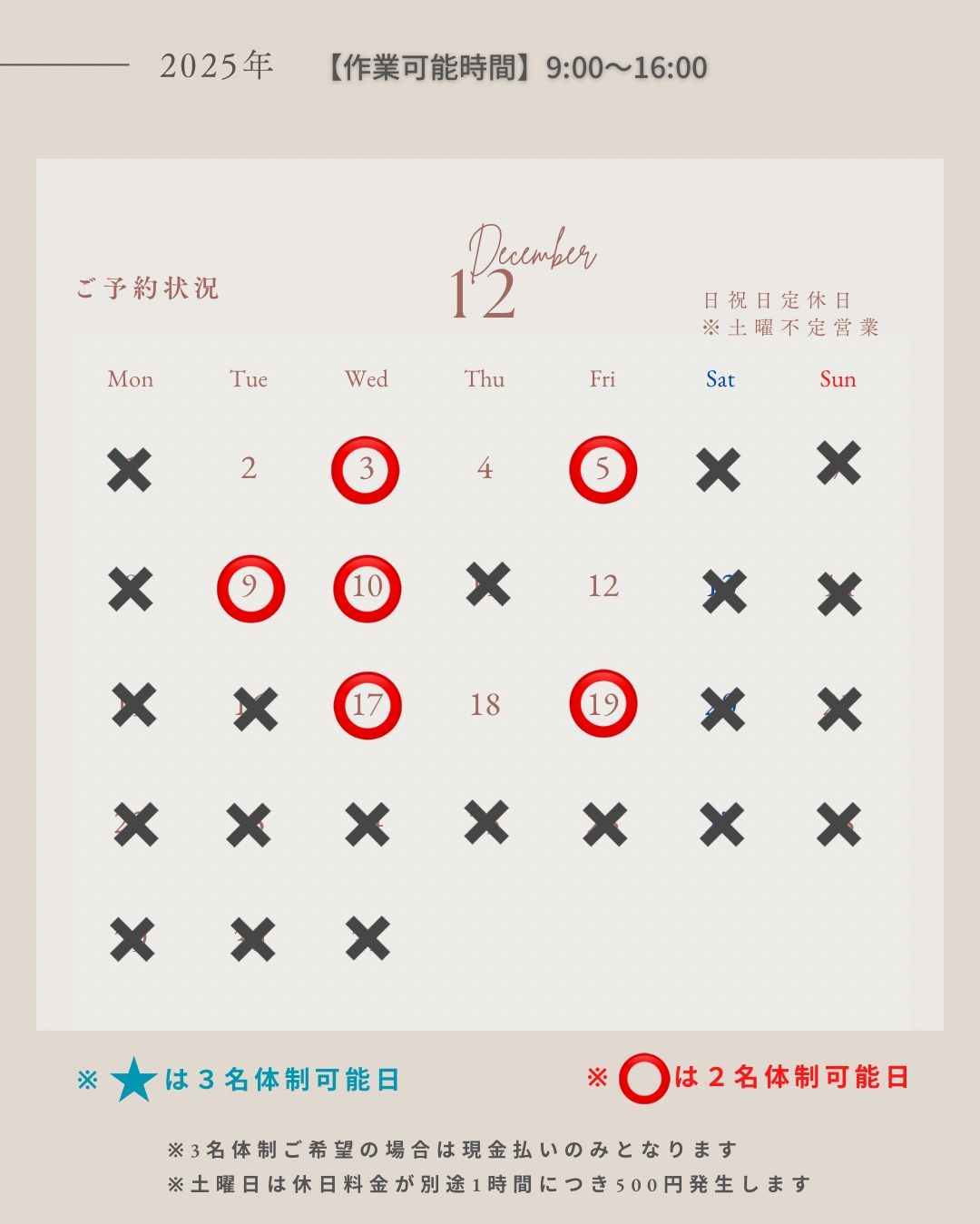 2名〜3名体制可能日をご案内させていただきます💁🏻♀️