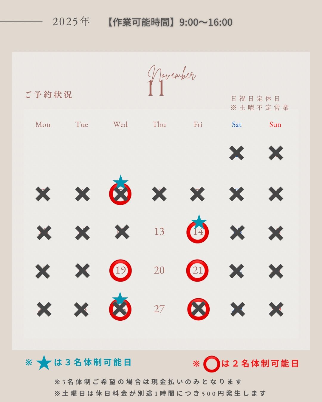 日にちに★が付いている日が3名体制可能日となっております🙇🏻♀️