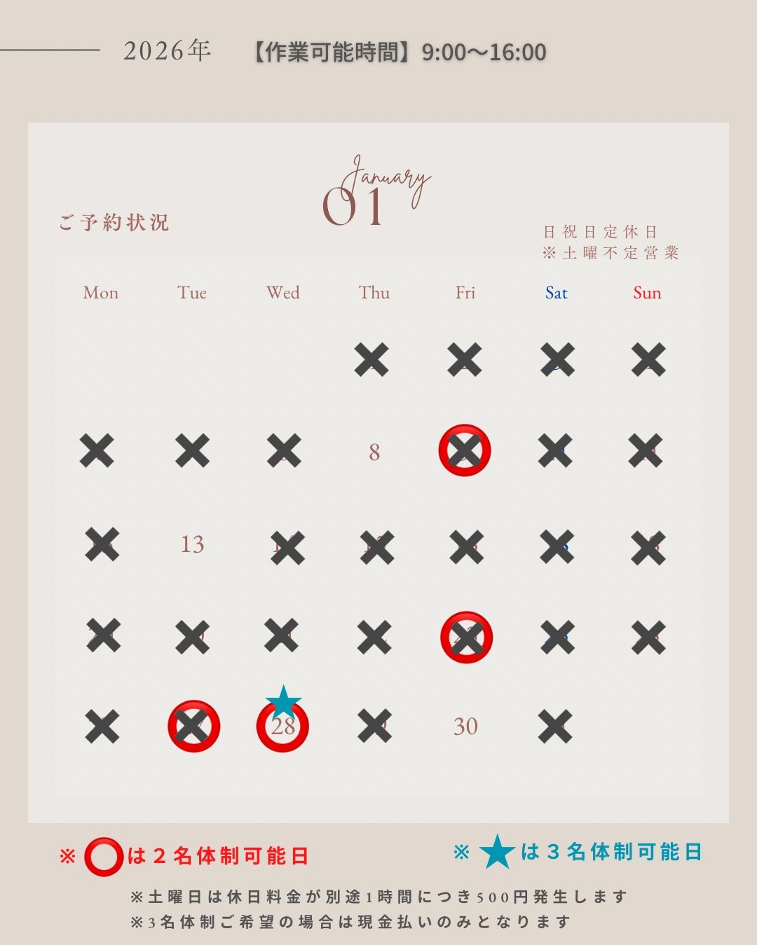 2名〜3名体制可能日をご案内させていただきます💁🏻♀️