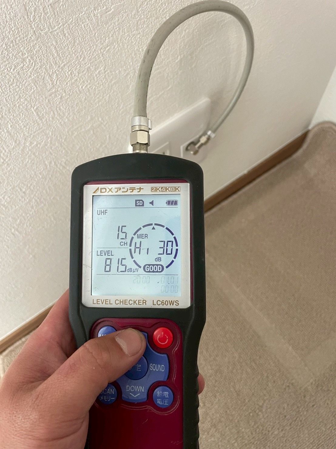 みずほアンテナの熟練スタッフは、チェッカーという専用の機器を使って、電波をしっかり測定し、最高の受信環境となる場所を丁寧にお探しします🔍💡
