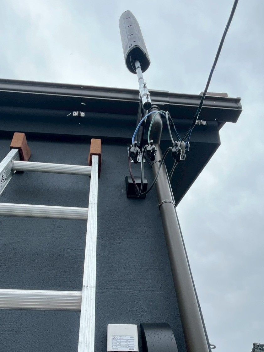 今回は、破風板(屋根の端にある板部分)にサイドベースを取り付け、アンテナを突き出すように設置しました🔧