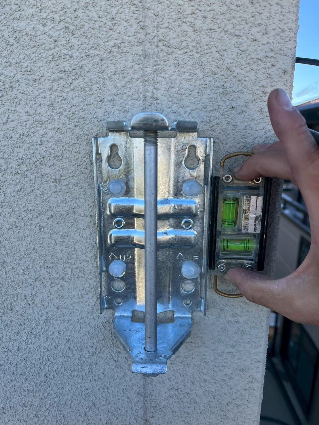 設置の際には水平器を使って正確に、ビス穴の上からコーキング剤を施し、丁寧に作業を進めます👷