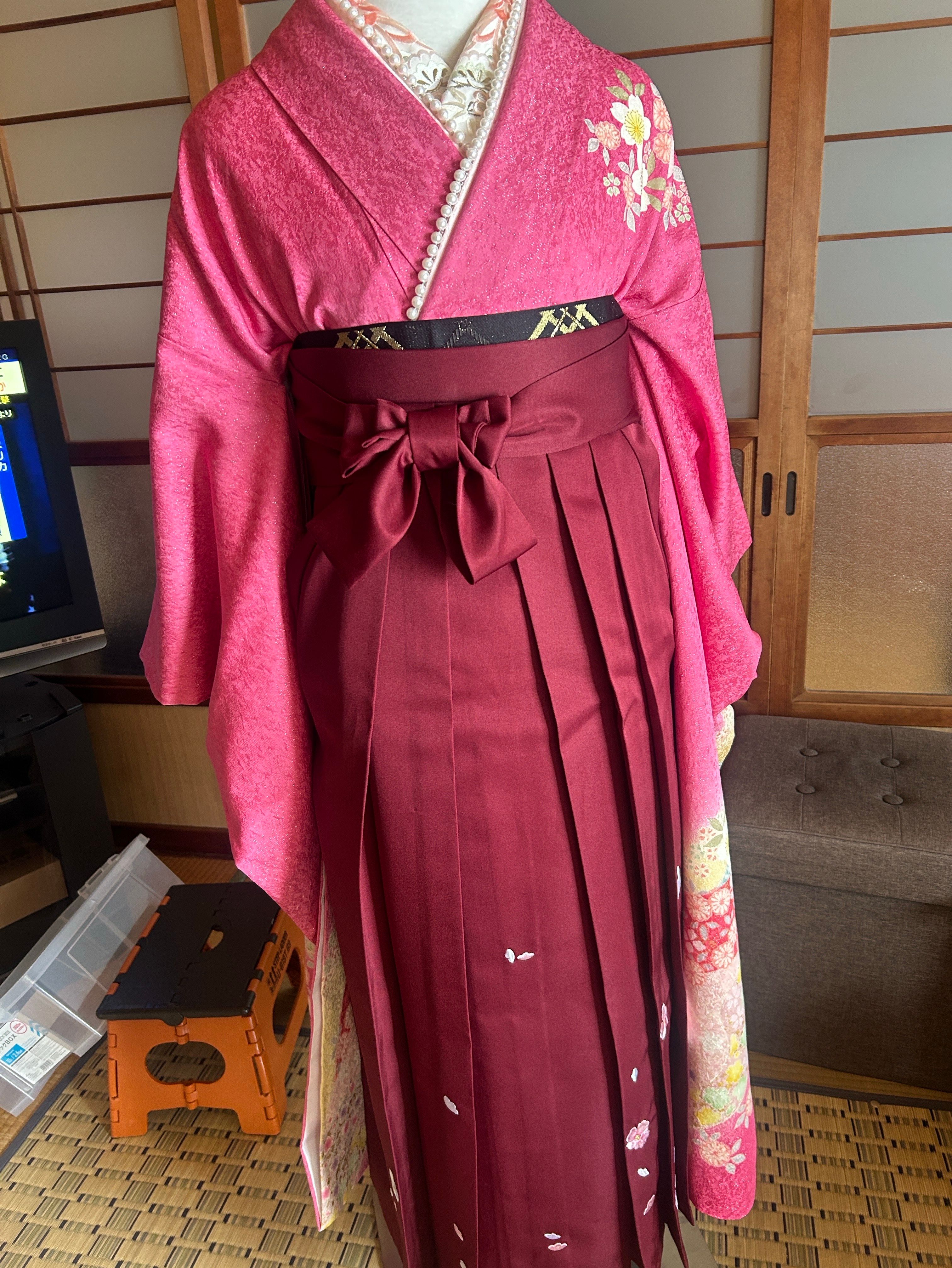 昨日、日曜日に袴の着付けの練習をいたしました。