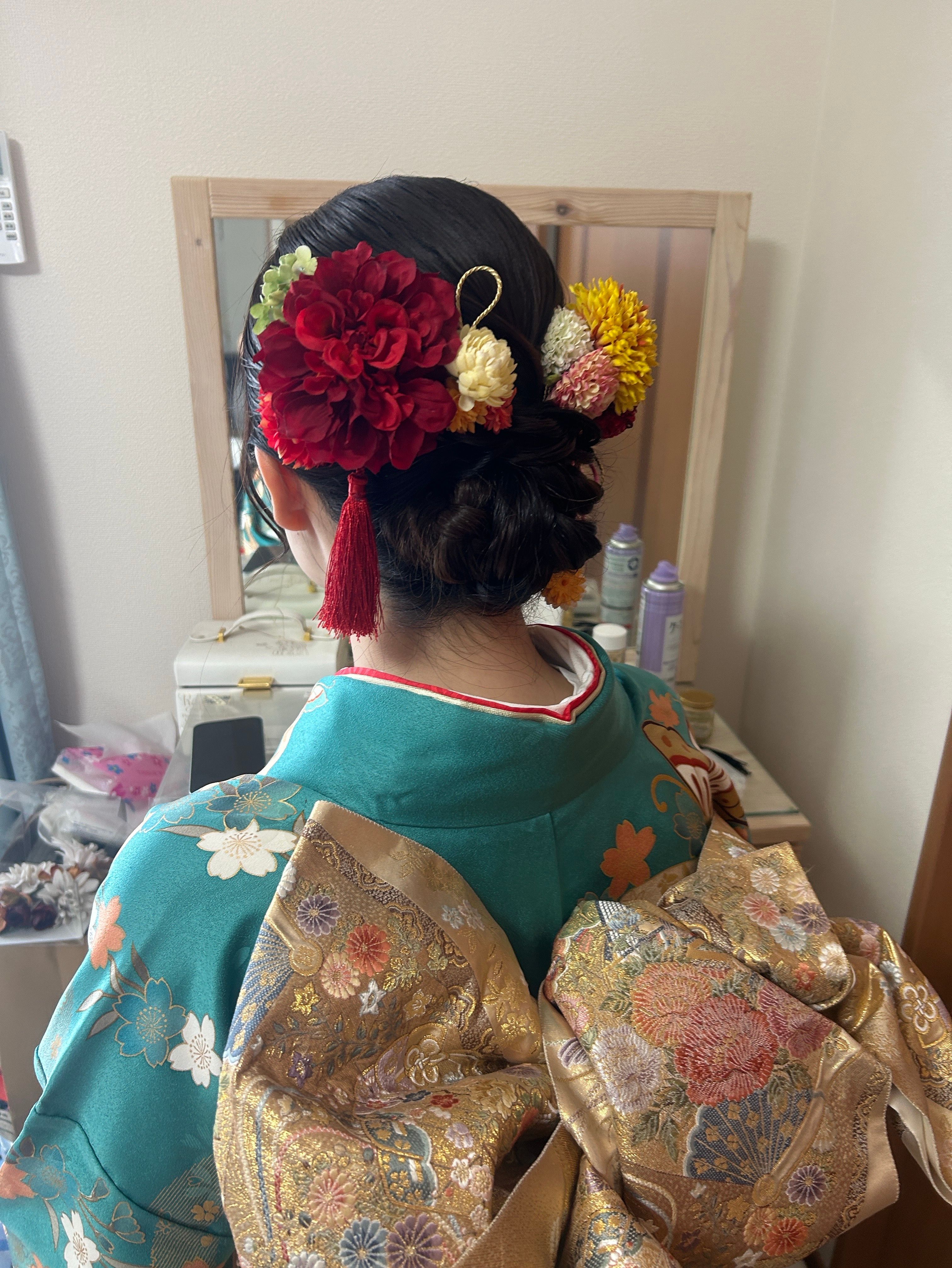 ふるゆわヘアセットが得意の着付け師 早朝、夜間対応可 着付け料金内でヘアセットも込み