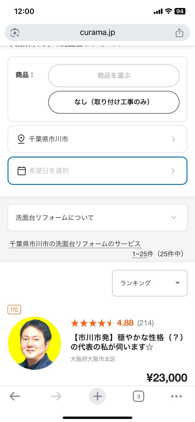 さて、最近洗面台のお取り替えのご依頼が多いと思ったら、暮らしのマーケットのサイトでランキング1位になっていました☆