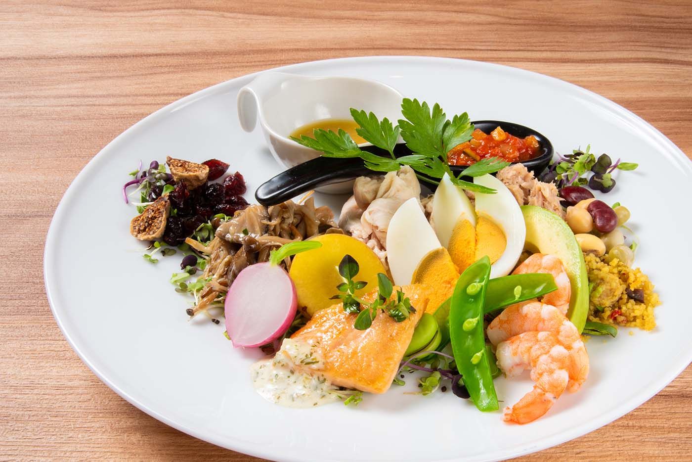 横浜・山下町のイタリアン『アクイラウォランス』で、新たなメニュー撮影を行った。今回の主役は「ALTO」というプレート。高たんぱく・低炭水化物をテーマに、豆類や卵、ツナ、そして鶏ムネ肉を中心に組み立てられている。