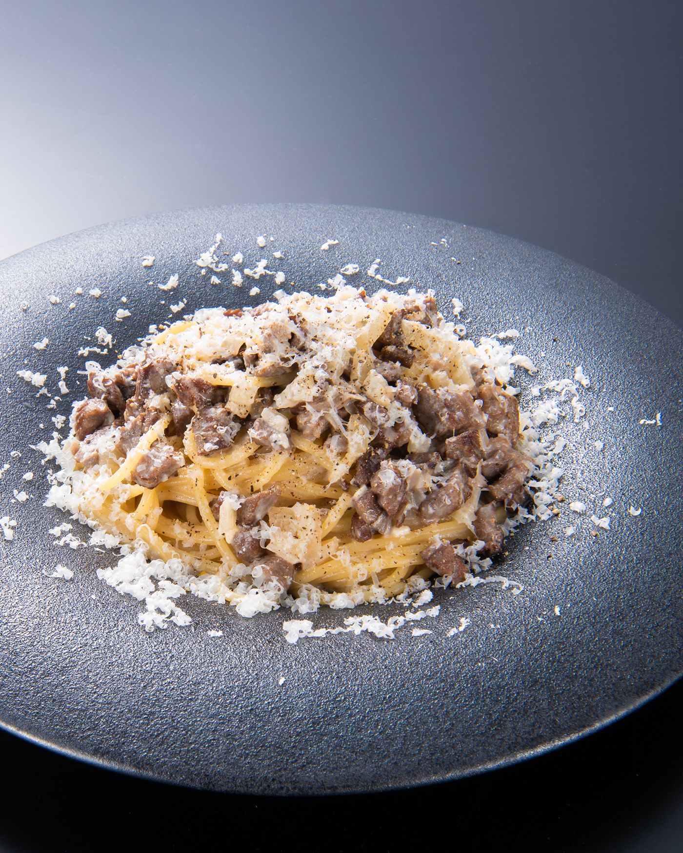 肉と麺。それぞれが主張しながら、互いを高め合う稀有な関係。粗くも繊細に仕上げられた肉は、単なる具材ではない。まるでひとつの主旋律のように、皿の中心で堂々と歌い上げている。その肉の旨味を受け止めるパスタは、ほどよい歯応えとともに、肉の滋味を逃すことなく纏ってゆく。ソースは控えめながらも、全体を包み込むように柔らかく寄り添い、皿の上に静かな調和を生む。