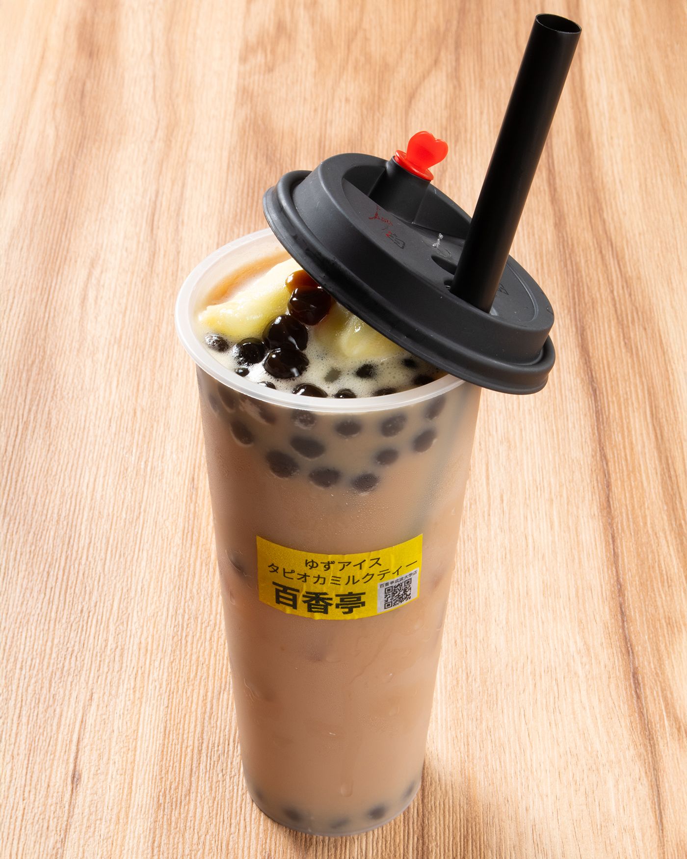 持ち帰り商品は、見た目だけで内容が伝わりにくいのが難点です。そこで今回は、蓋とストローを付けたまま、あえて蓋を少し開ける構図に。中身が見えることで、購入時の安心感につながる写真を意識しました。