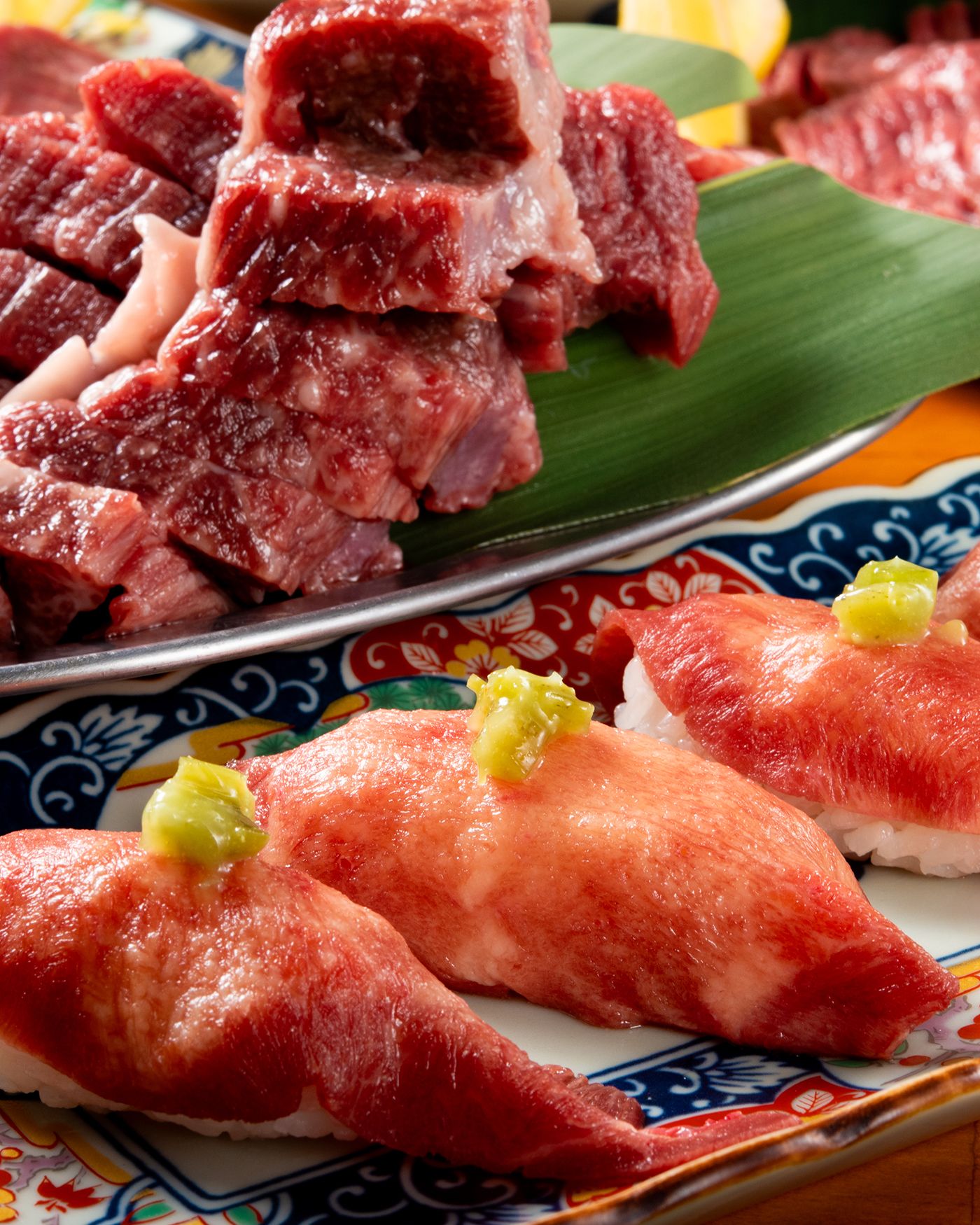 焼肉ホルモンたけ田で、メニュー撮影をしてきた。今回の被写体は肉寿司。声高ではないのに、目に入った瞬間にこちらの呼吸がひと拍止まる。赤身が静かに湿度をまとい、光に溶けるように艶をつくる。切れ目の走り方が素直で、筋がうまく整っている。撮る前から「これはきっと映る」と確信できる赤身だった。