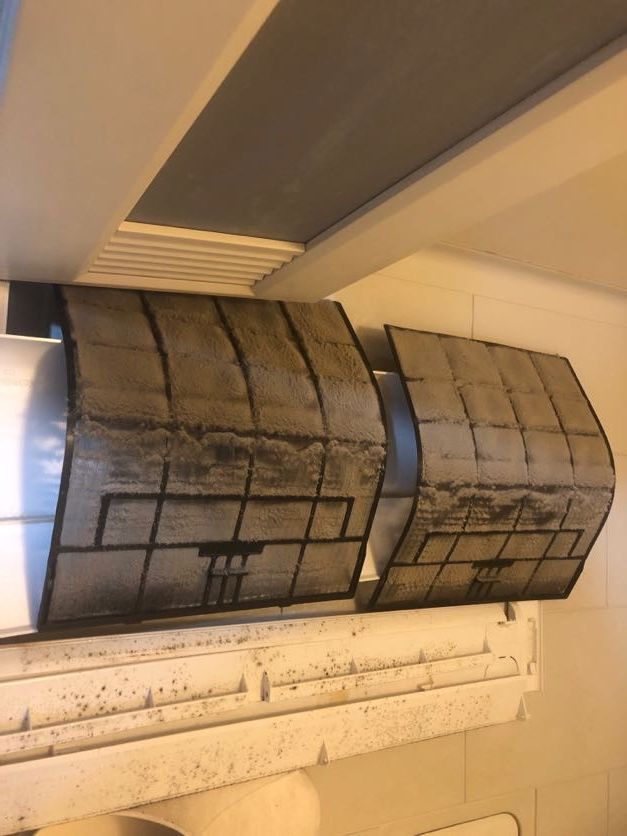 エアコンを久しぶりに開けてみると、フィルターにはホコリがぎっしり…Σ(・ω・ノ)ノ!