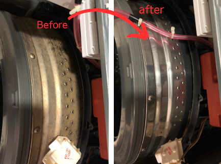 写真のように、長年の使用でこんなに汚れていた洗濯槽も、プロの分解洗浄ならピカピカに生まれ変わります(^^)