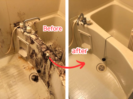 長年のカビや水アカがこびりついた浴室…。