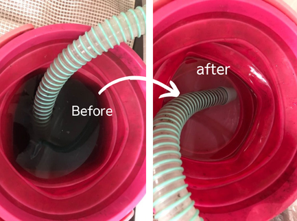 写真のように、はじめは真っ黒だった水が、洗浄を繰り返すことでだんだん透明になっていきます。