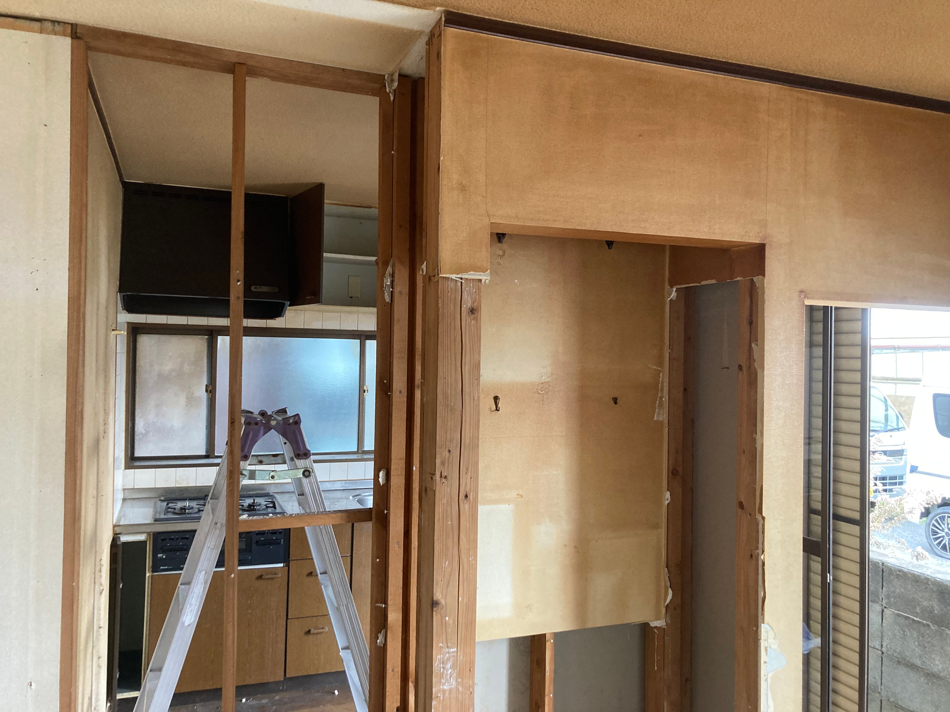 ダイニングとキッチンの間仕切壁解体しました。