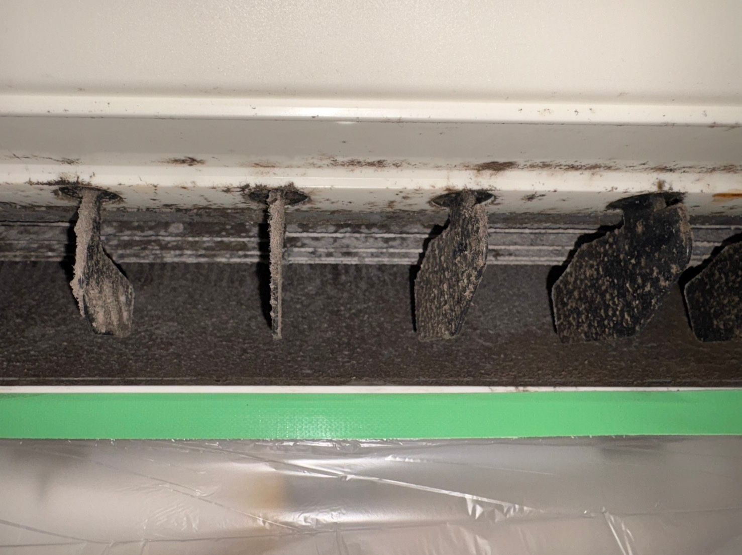 最近はストーブを使われていたとのことで久しぶりにエアコンを動かしたところ内部にカビの塊が見えたことでご依頼をいただきました。