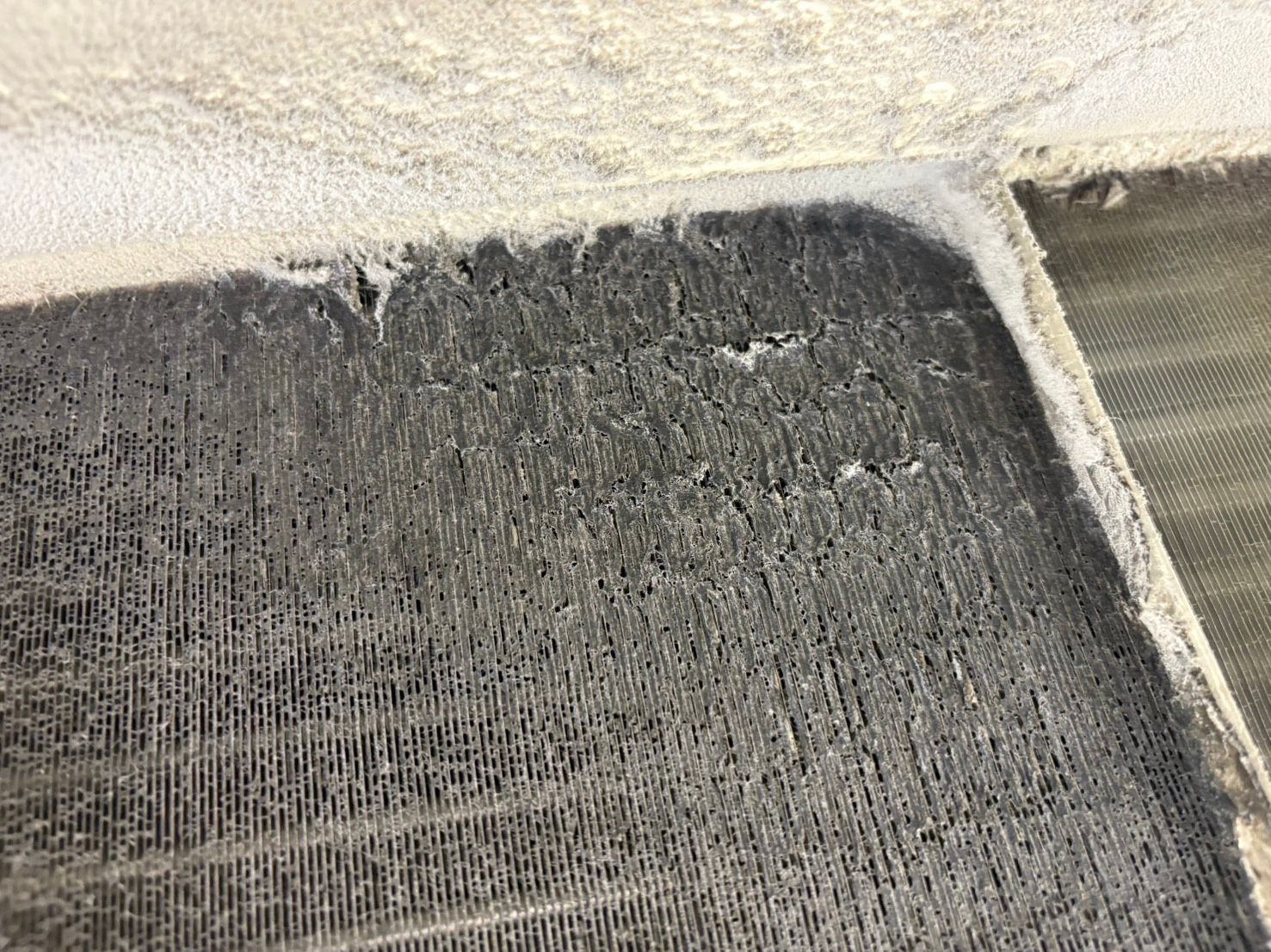 店舗のエアコンであったため、かなりの汚れがついておりました、、、