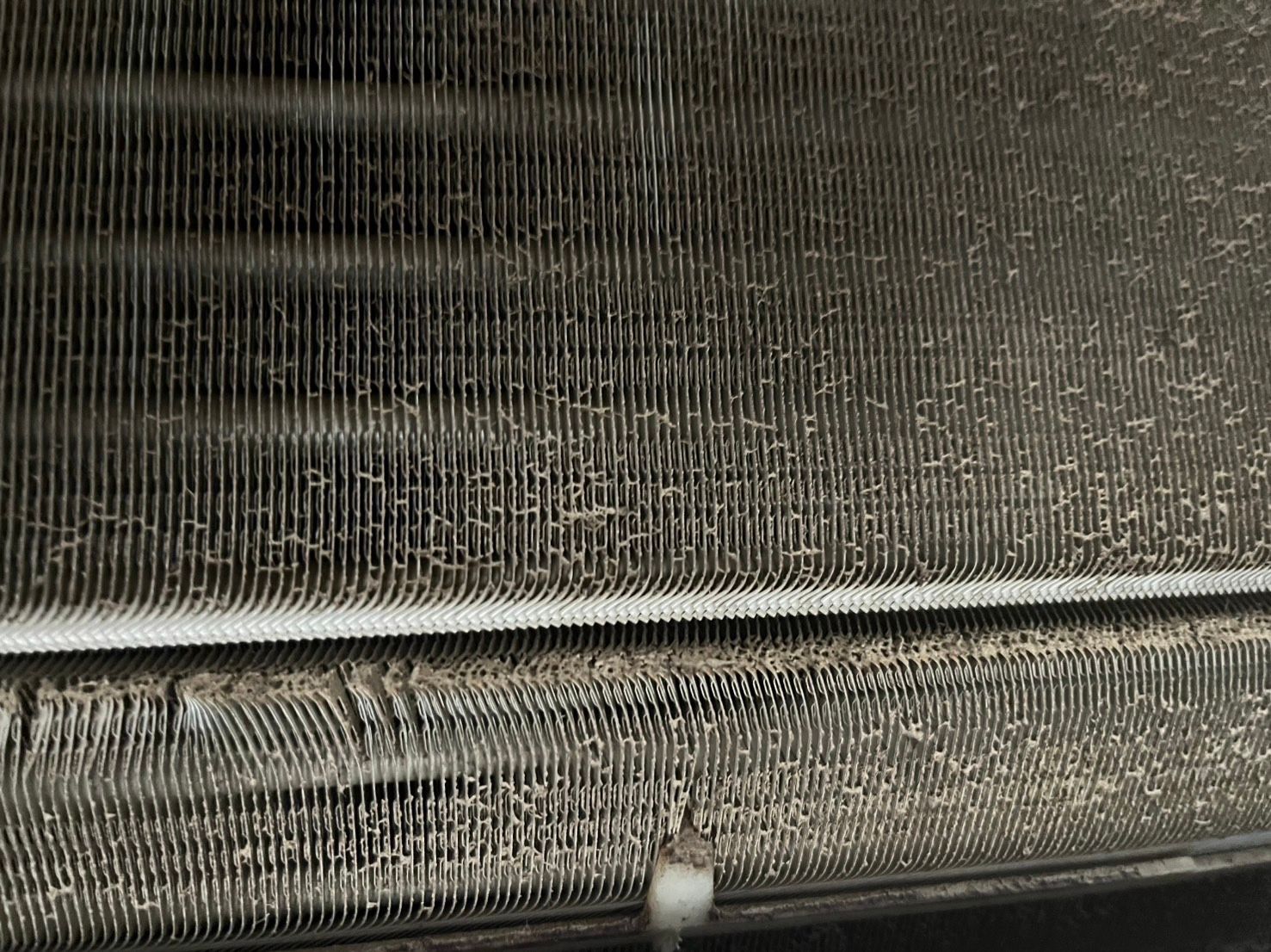 アルミフィンにカビとホコリが凄かったので、いざクリーニング開始‼️みるみるうちに綺麗になっていってお客様も大喜びでした☺️