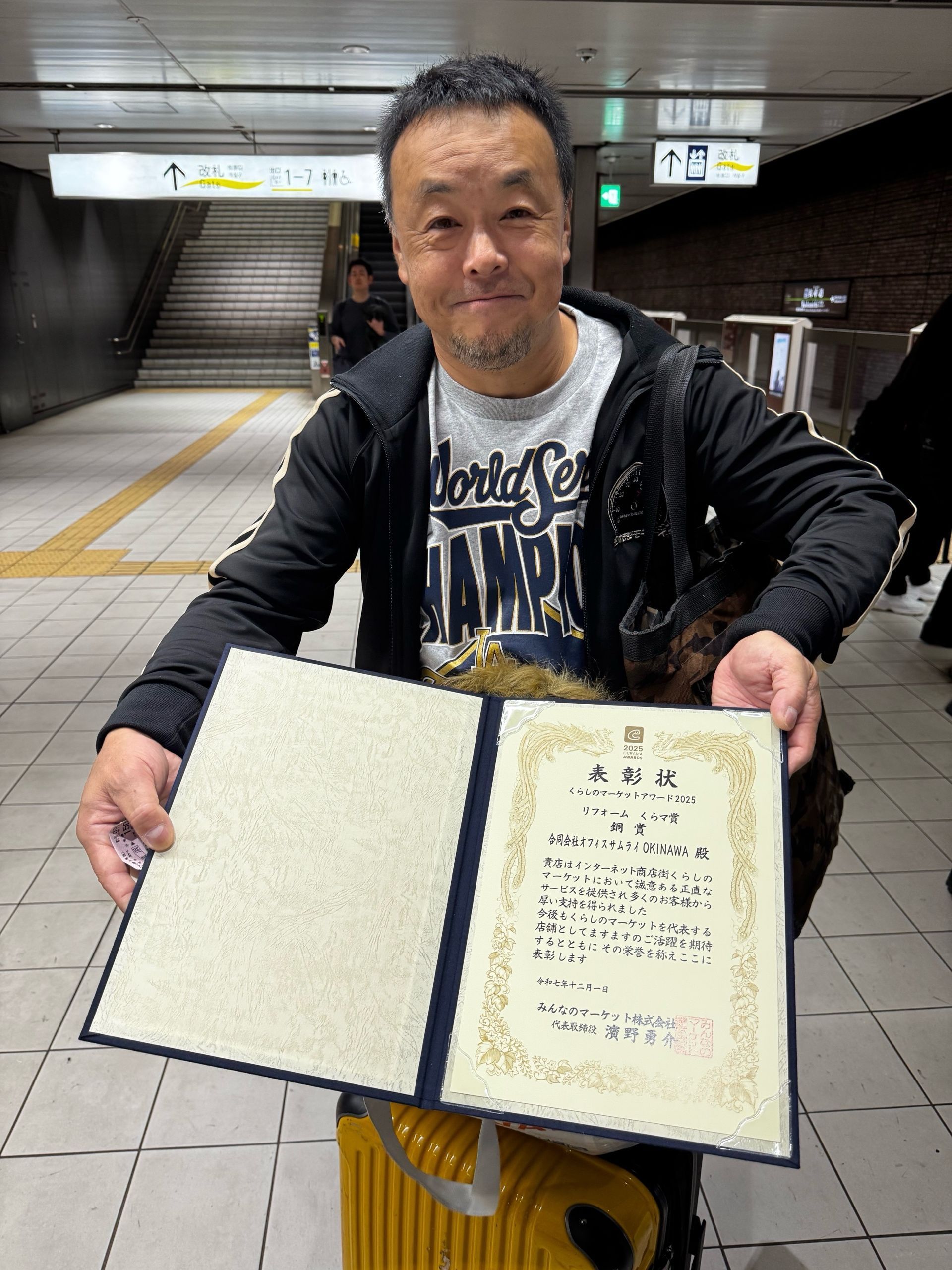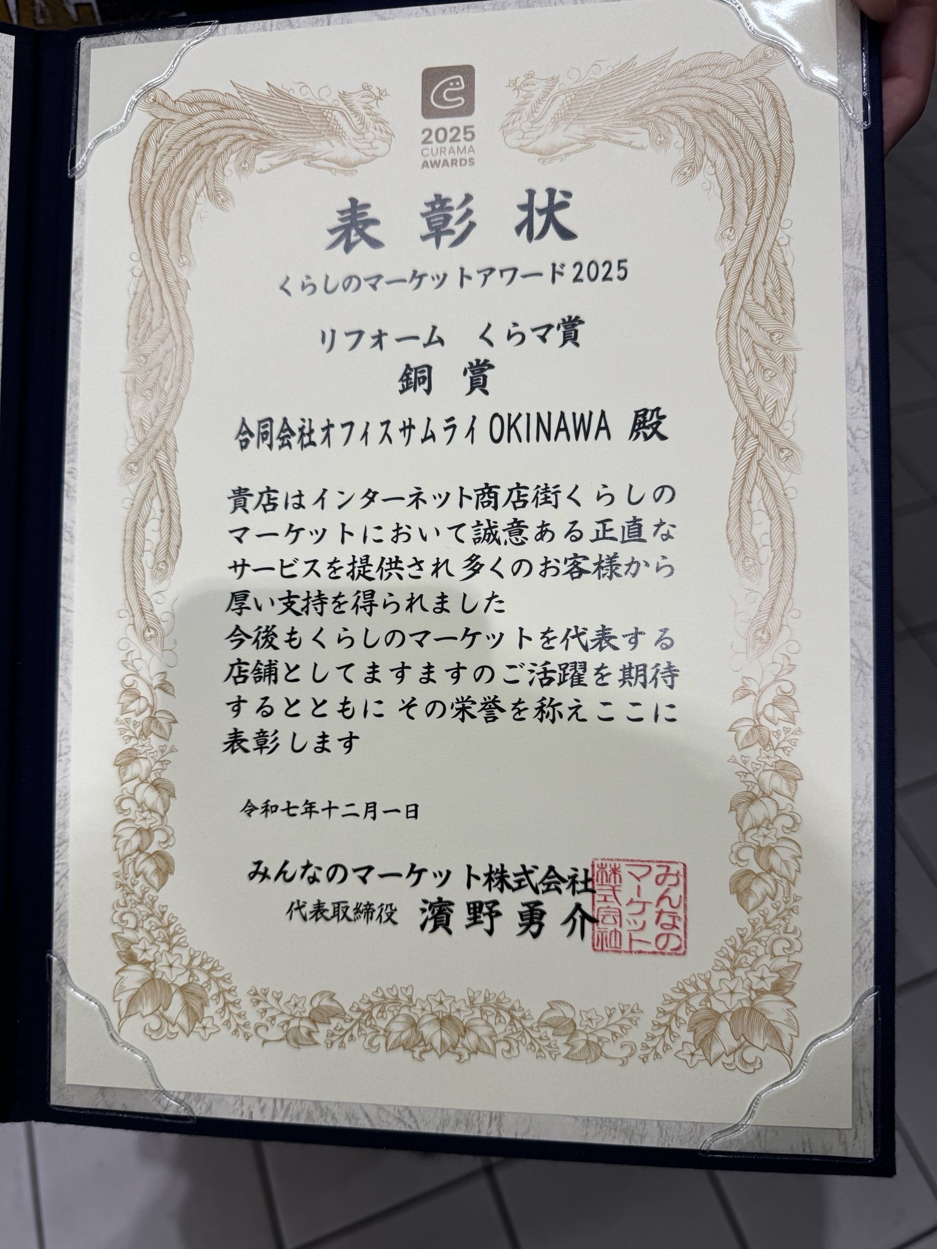 沖縄市でクロス工事専門店の合同会社オフィスサムライの雲川代表が映えある賞を受賞しました。